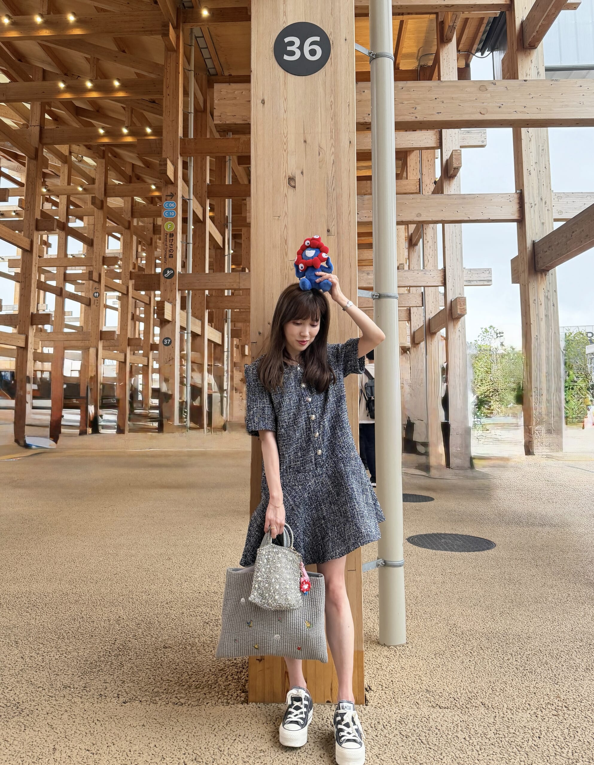 大屋根リングで自分の年齢の柱番号の前で記念撮影をするのが流行っているらしく、ちゃっかり✨😆(たくさんの人がいたのでiphoneのクリーンアップ機能で消しました✨)