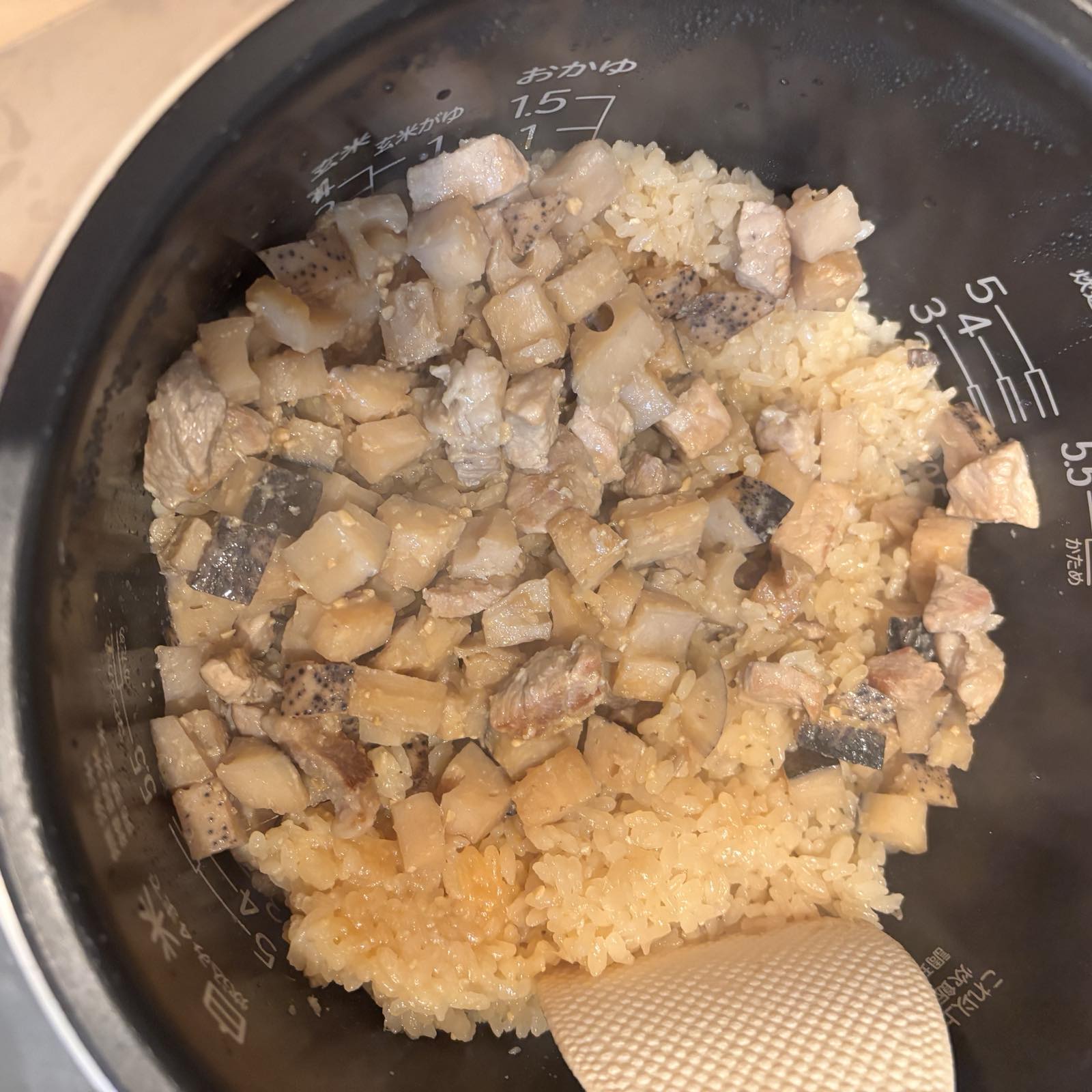 炊飯器の中では、