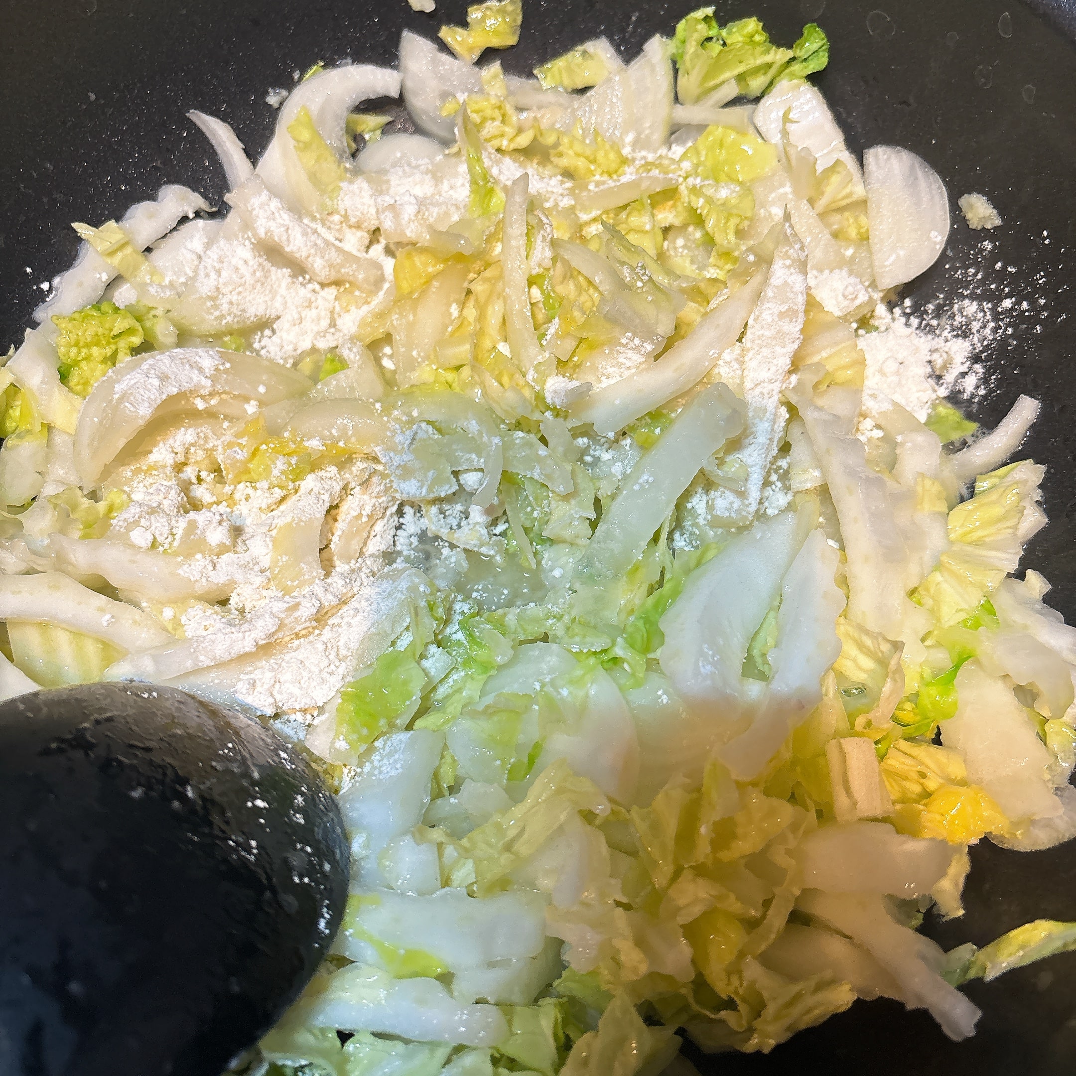 白菜と玉ねぎ(カット雑め)入りまーす。