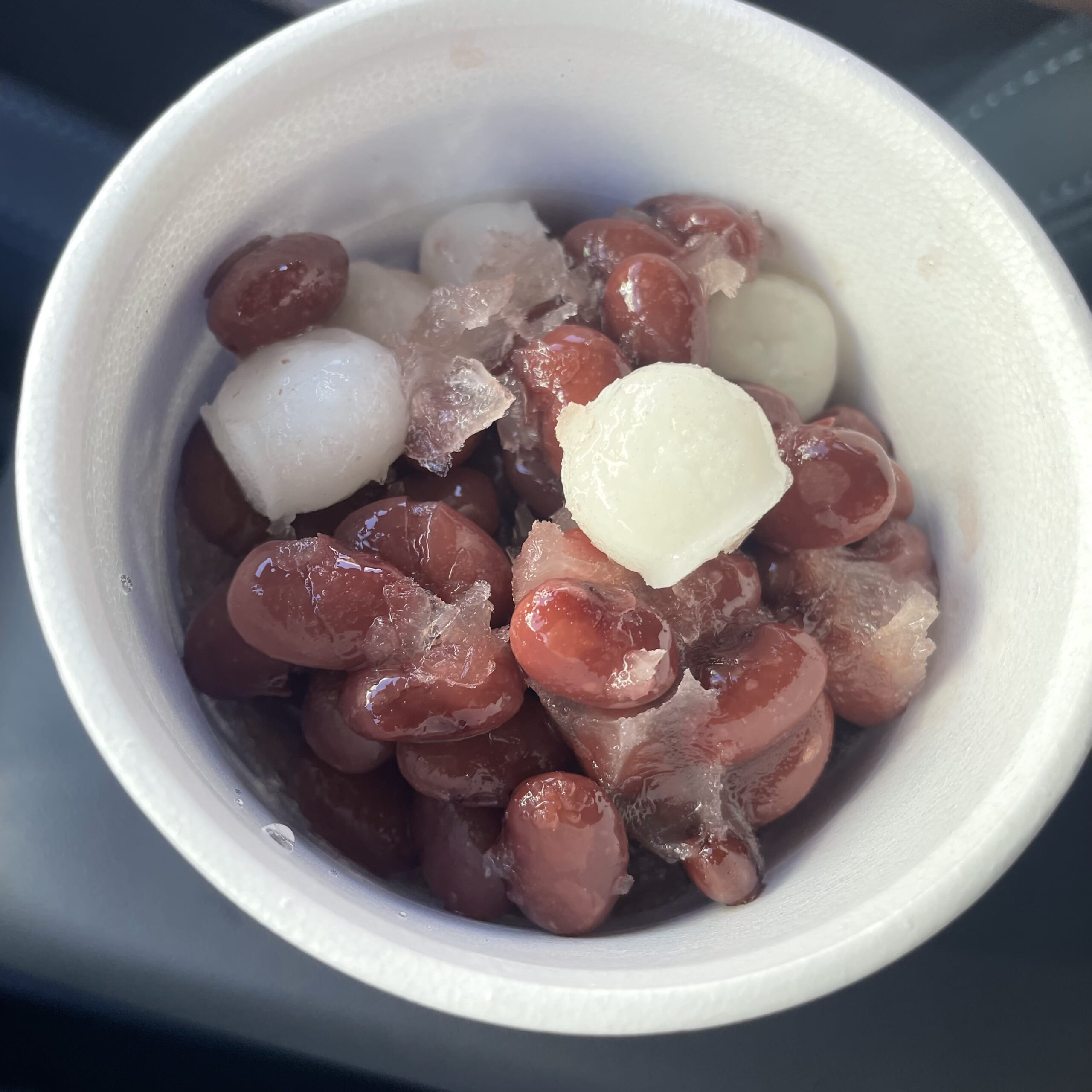 こちらの氷は金時豆の煮汁を凍らせた氷を使用しているそう。
