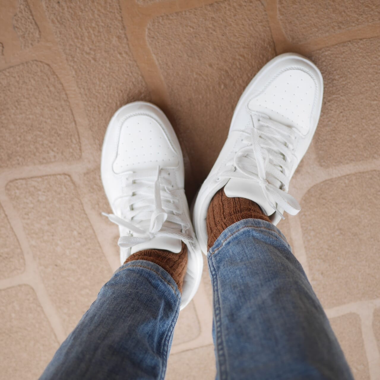 厚すぎず薄すぎず、いつものスニーカーにフィットする厚み。冬場はタイツの上にもおすすめです。