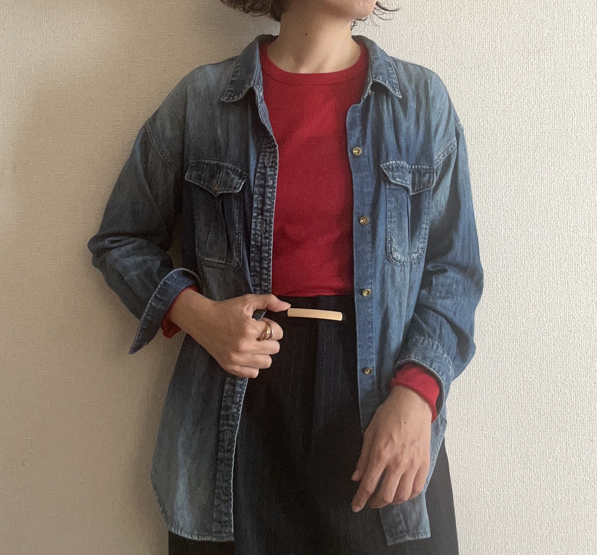 デニムブルー×赤の組み合わせは、いつものカジュアルを新鮮に見せてくれうれしい♡