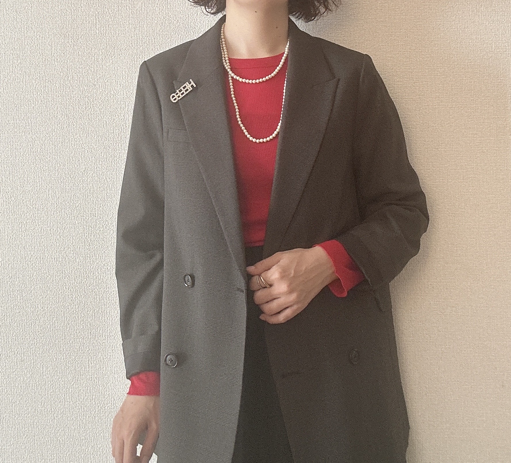 グレーの中にちらっと見える赤が、さりげなく女性らしい。