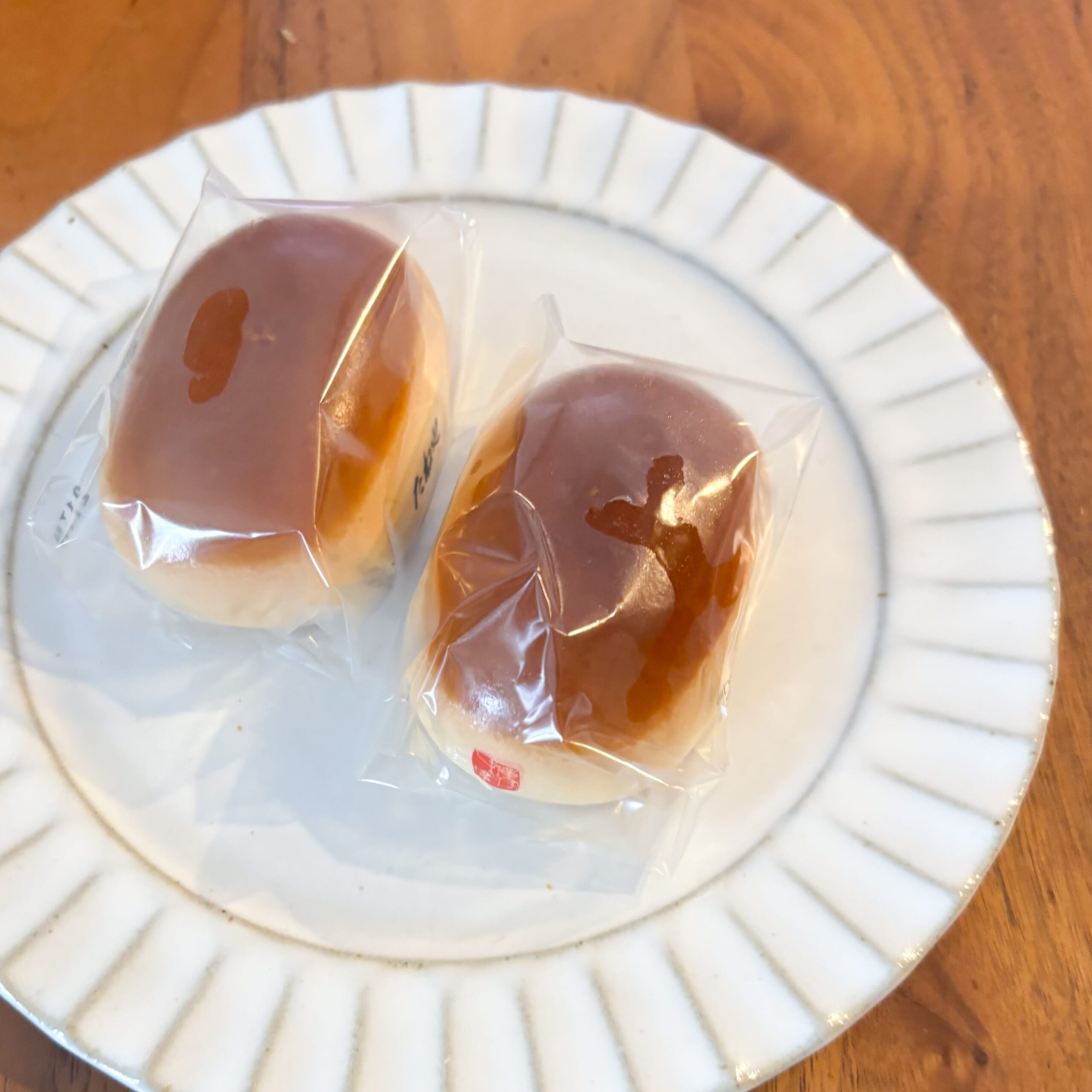 つやつやの栗饅頭。白餡の中に刻んだ栗が入っています。おばあちゃんのお家と、漆塗りのまあるい菓子盆を思い出す素朴さです。
