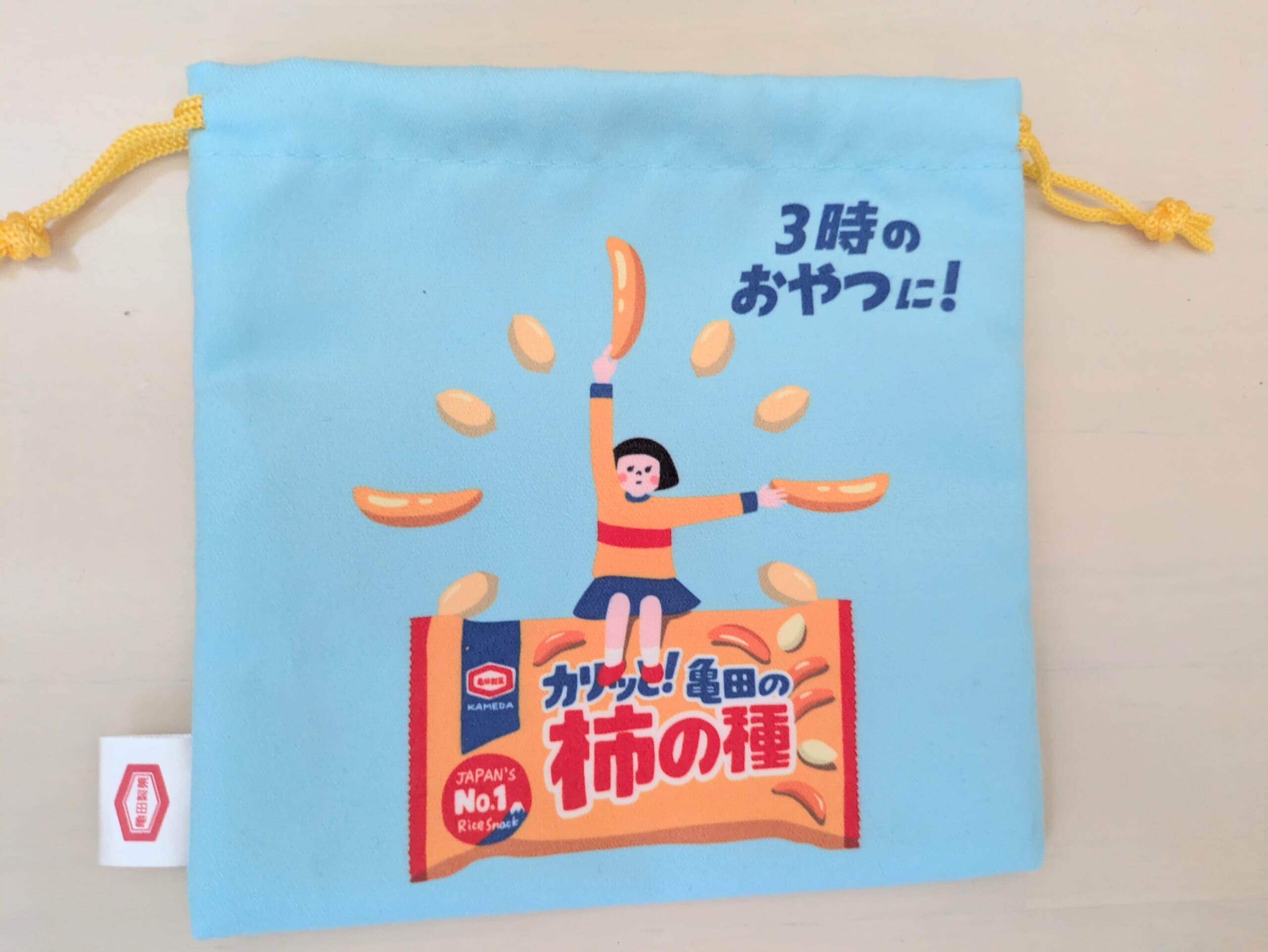 先日行ったスーパーで、柿の種の対象商品購入で巾着がもらえるキャンペーンをしていました