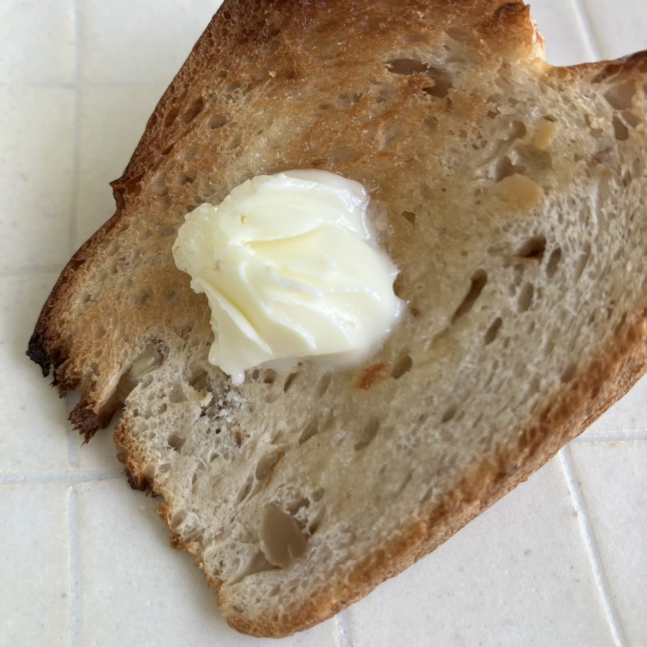 バターをこのくらいたっぷり塗っても重くなく、とにかくコクとうまみを感じるバターです。