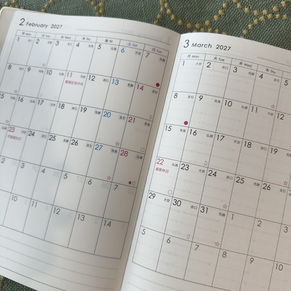 去年使っていたカバーがとても綺麗だったので、中身だけ買ってそのまま活用しようと思っていたのですが…よく見たらしっかり「2025」と書いてありますね(笑)。
