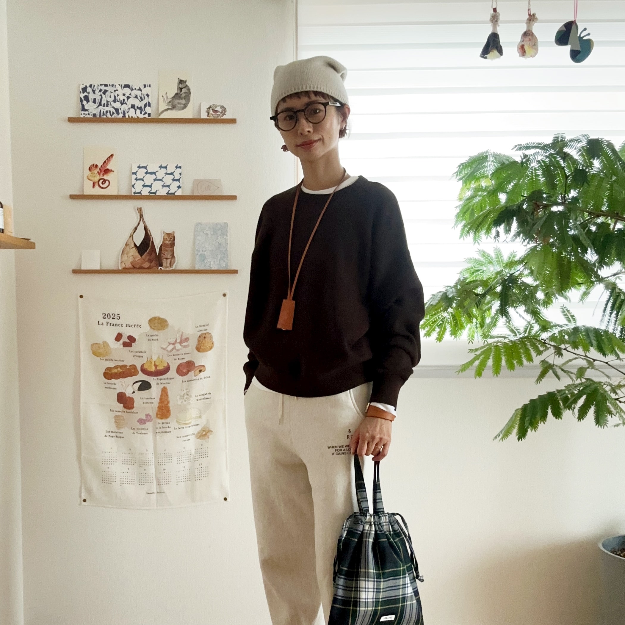 スムースコットンクルーネックセーターでゆるっとメンズライクコーデ
