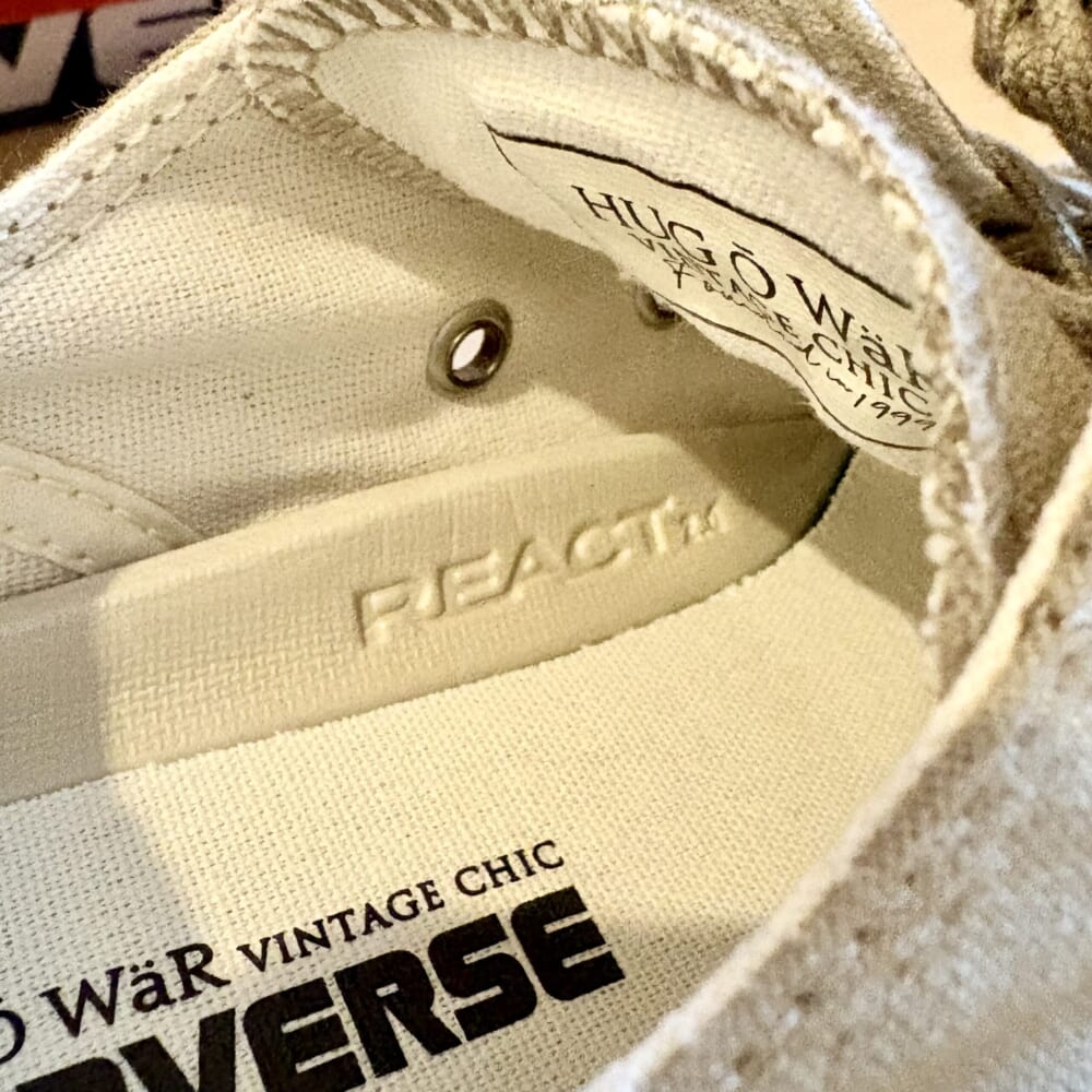 しかも今回もREACT2.0というカップインソールが入っているので、他のコンバースの靴よりも疲れないしラク!ブラウンコンバースにもこのカップインソールが入っていましたが、それまで履いていたコンバースの靴よりも履き心地がよく、長時間履いていてもラクな気がします。