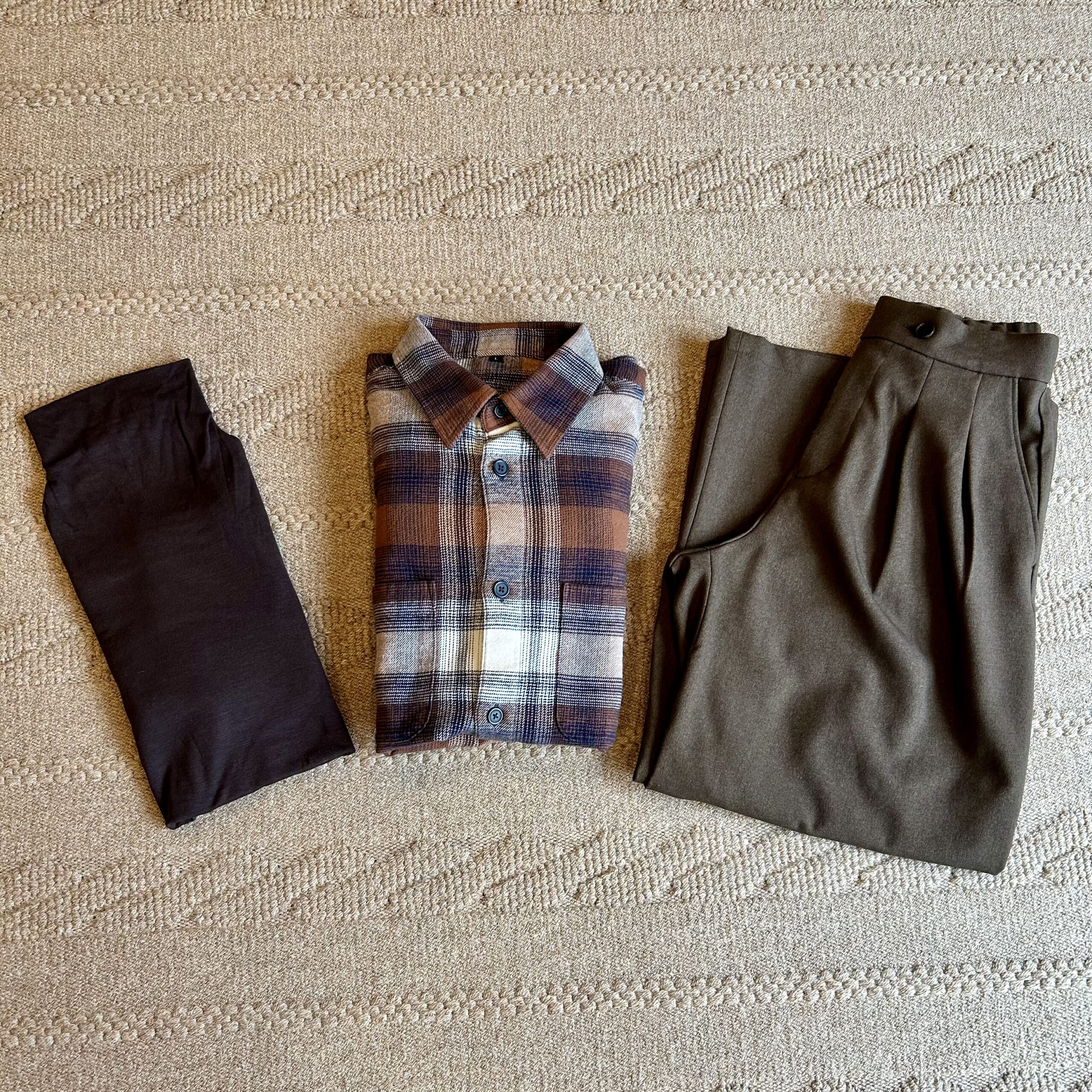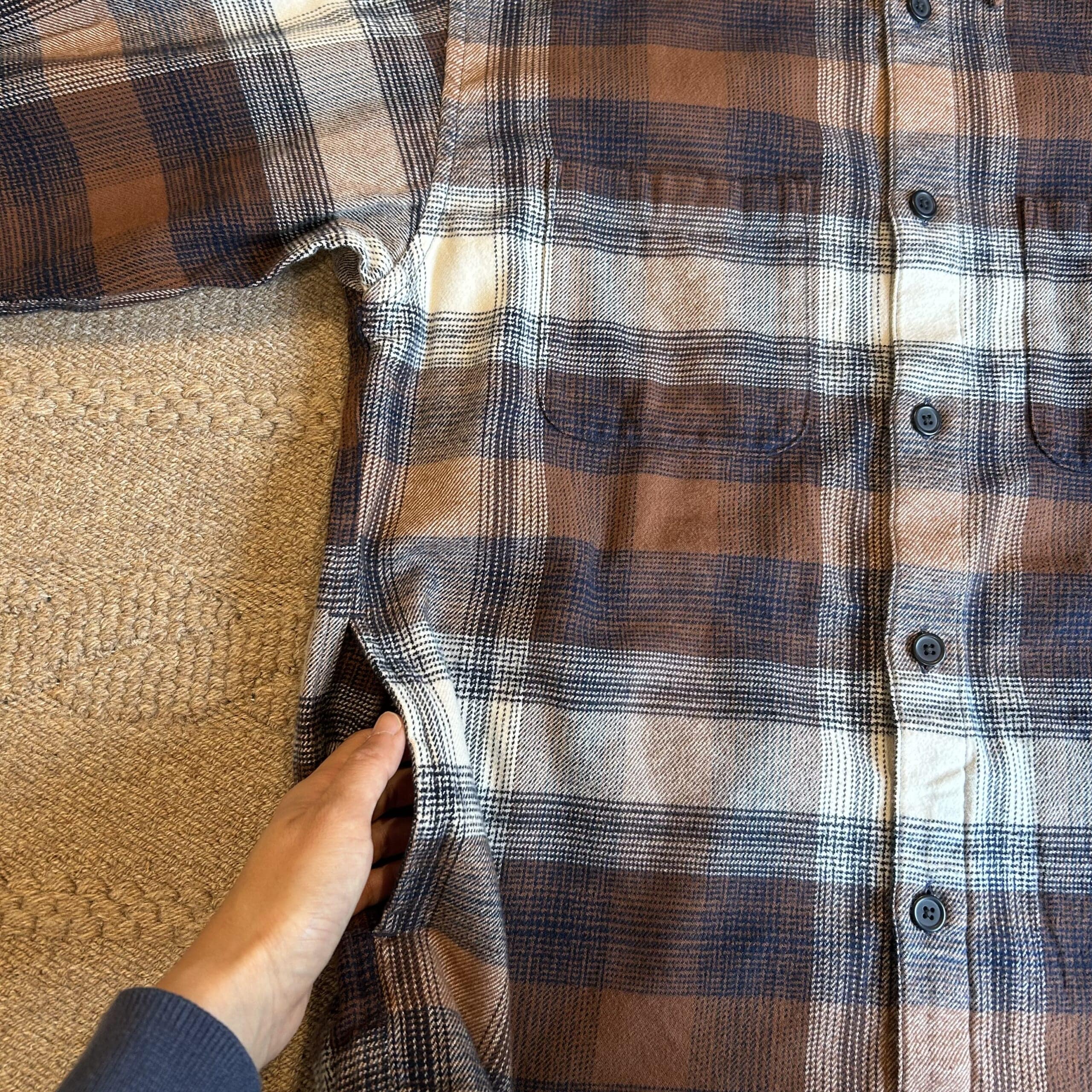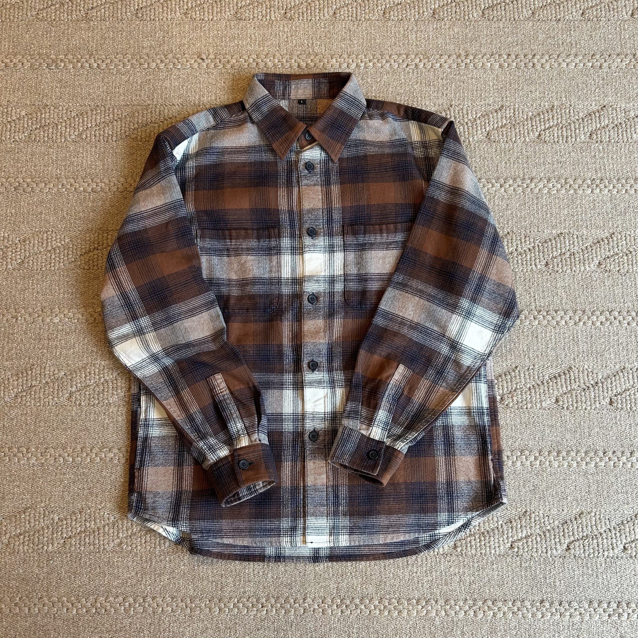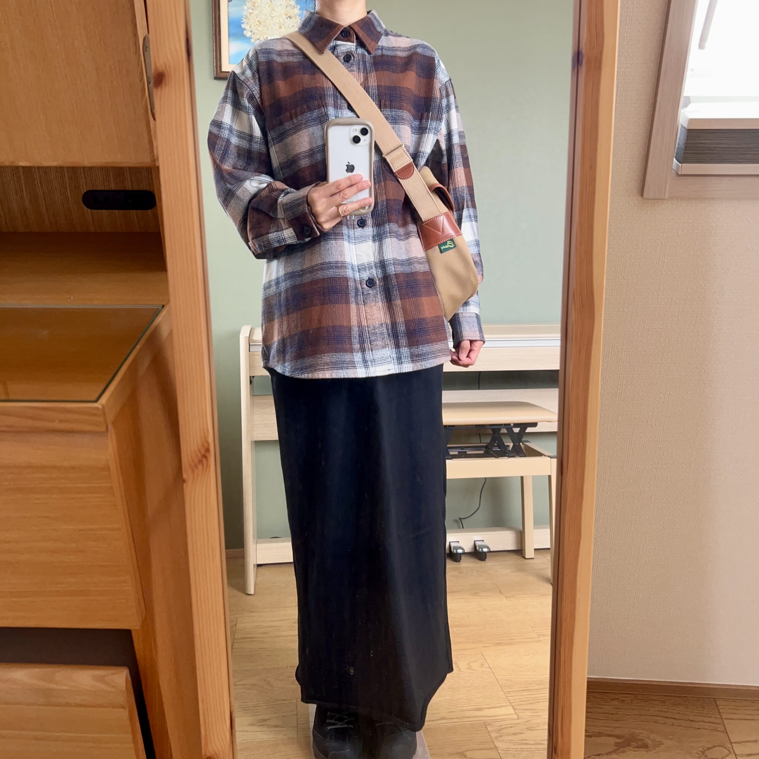 今年はチェックシャツが欲しいなぁと思っていて、Youtuberさんが紹介していたこちらにしました。ブラウンとネイビーの配色とフランネルの生地感が、古着っぽさもありかわいい!ジャケットなので両サイドにポケットもあります。ユニクロや無印良品は、メンズを見ることが多いです。