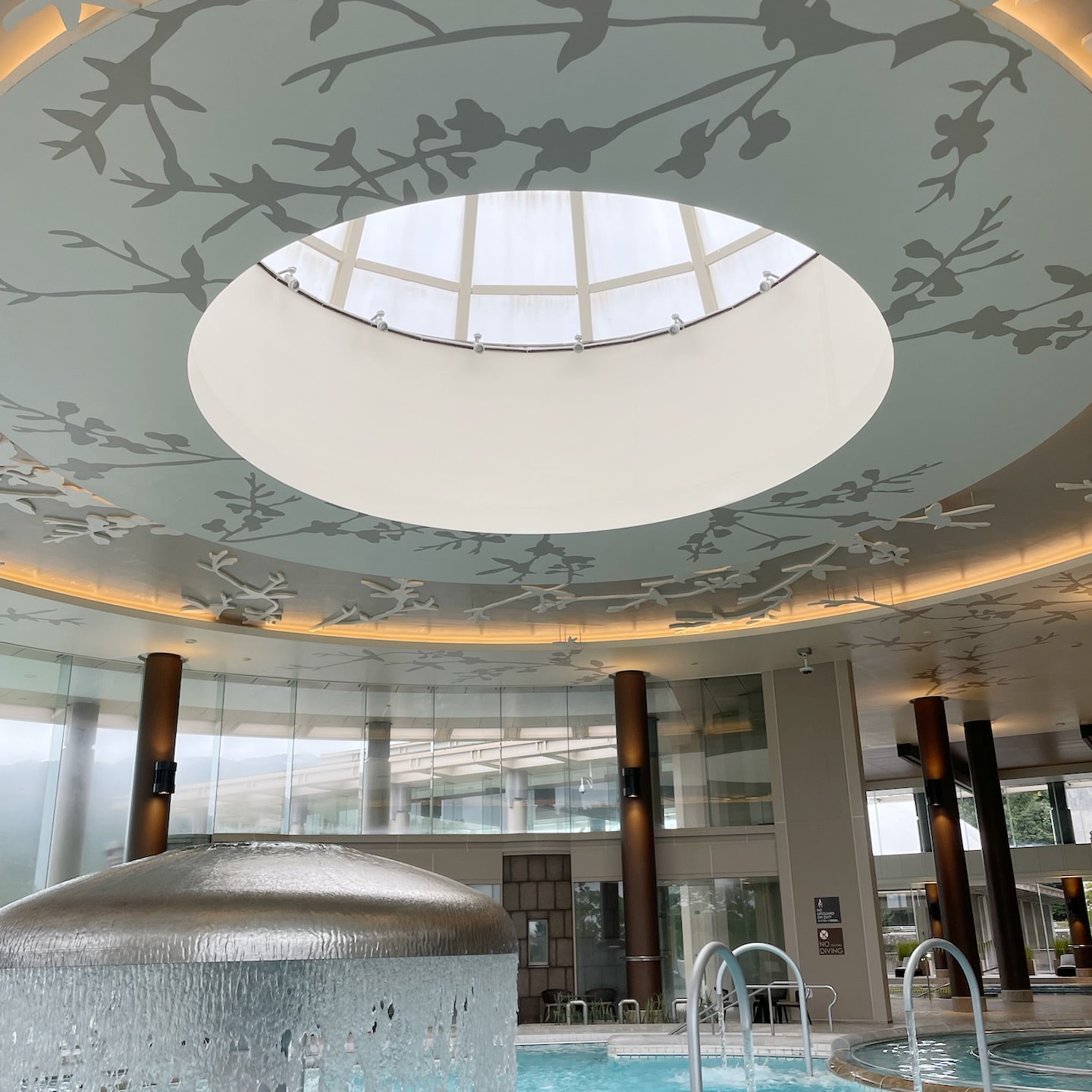 ヒルトン小田原のプールはバーデゾーンというところの1階にあり、宿泊していた棟からは3階の連絡通路を通っていきます。