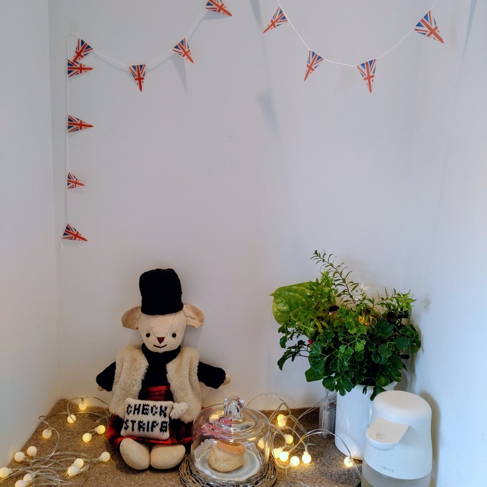 イベントでは税込み3300円のお買い物につき1回ガラガラ抽選ができまして、くまの英国ワッペンもいただきました。