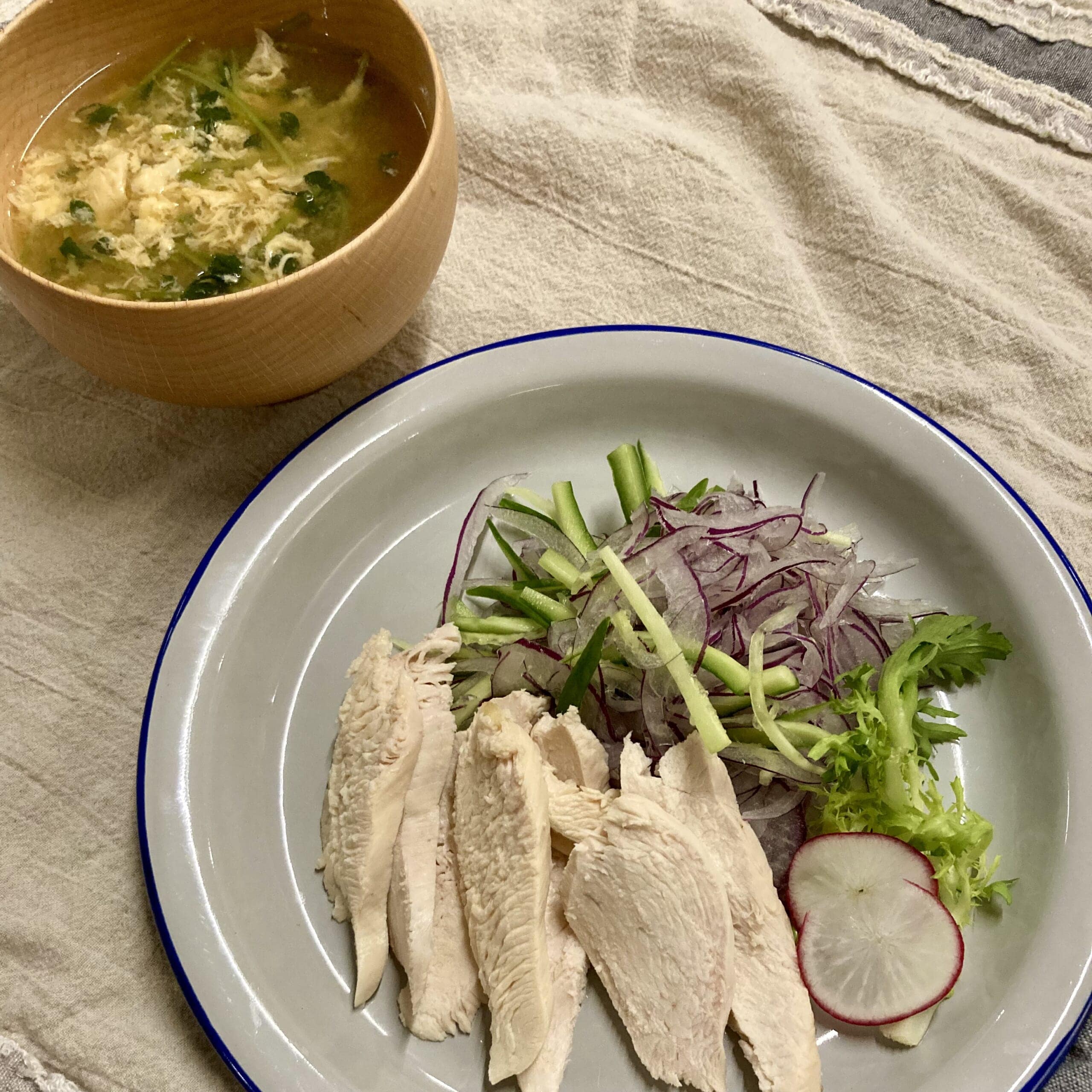 何となくパサパサする気がして、ゆで鶏はあまり挑戦したことはなかったのですが、実際につくってみたらしっとり!出汁で煮るのも新鮮。煮た後は、スープにさっとなって味も美味しくできました。