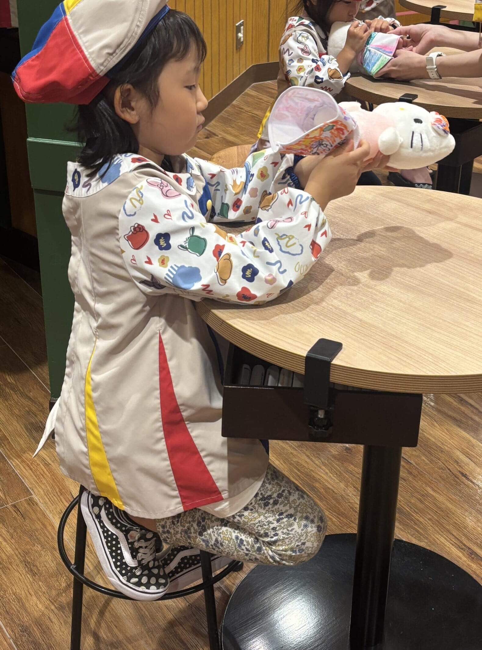 ペンでカラフルにお絵描きして、キティちゃんに着せて完成ー!