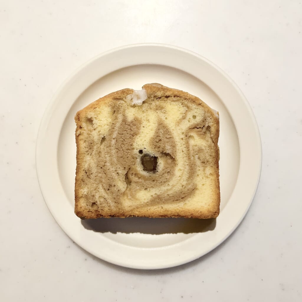 しっとりした優しい甘さのパウンドケーキ。マーブル状の中心に栗が!