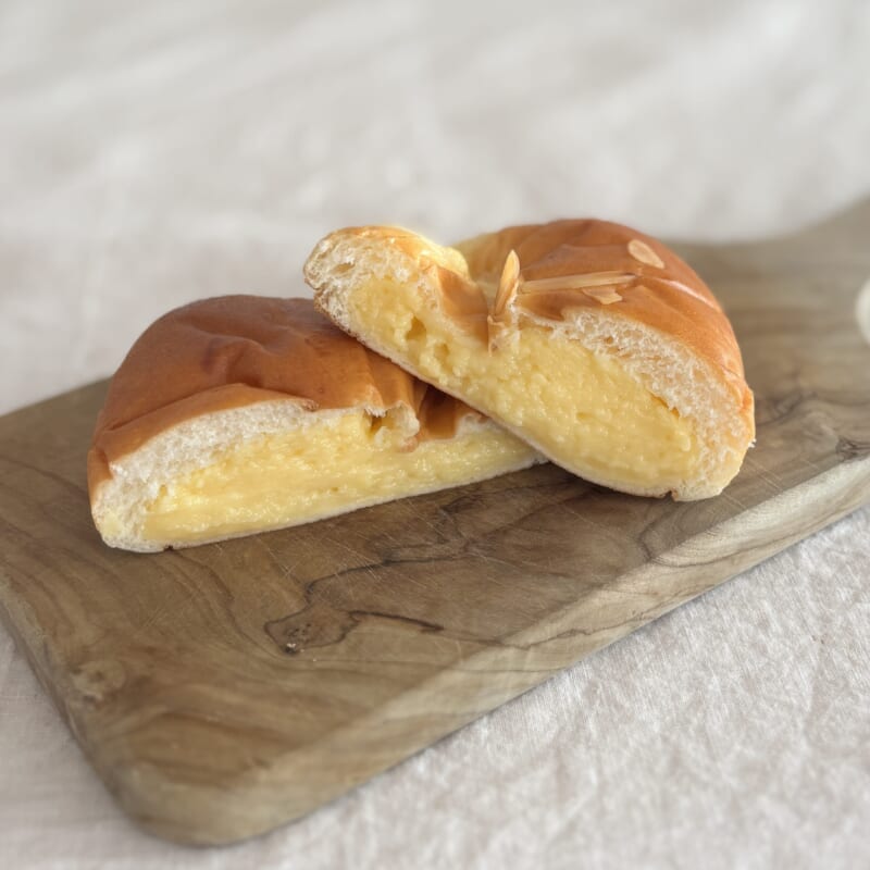 生地そのものもしっとり柔らかく、その中にたっぷり詰まった濃厚なカスタードクリームがたまらない美味しさ♡