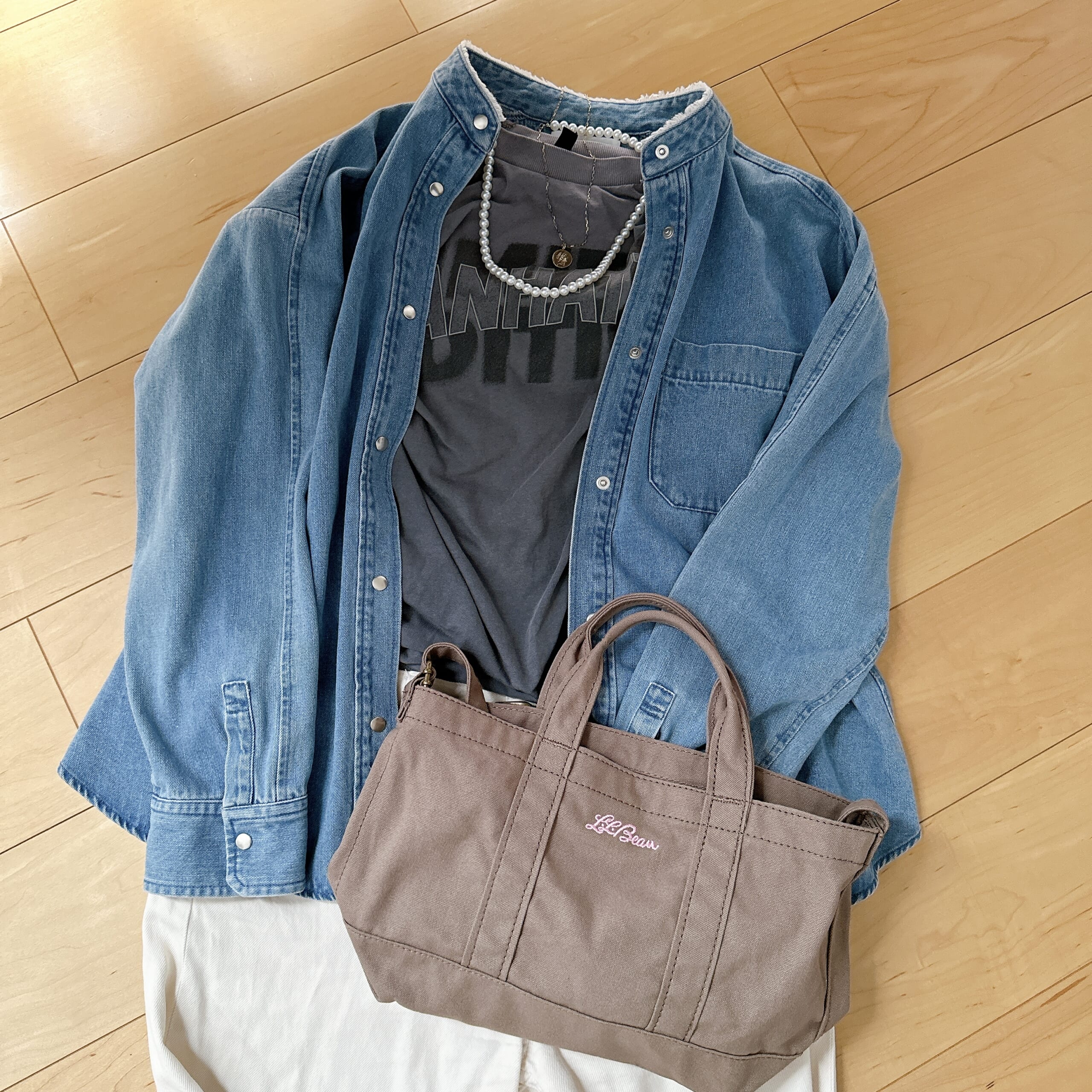 きれいめバッグではなく、あえてカジュアルな印象のあるスモールトートがいいハズシになってます♡