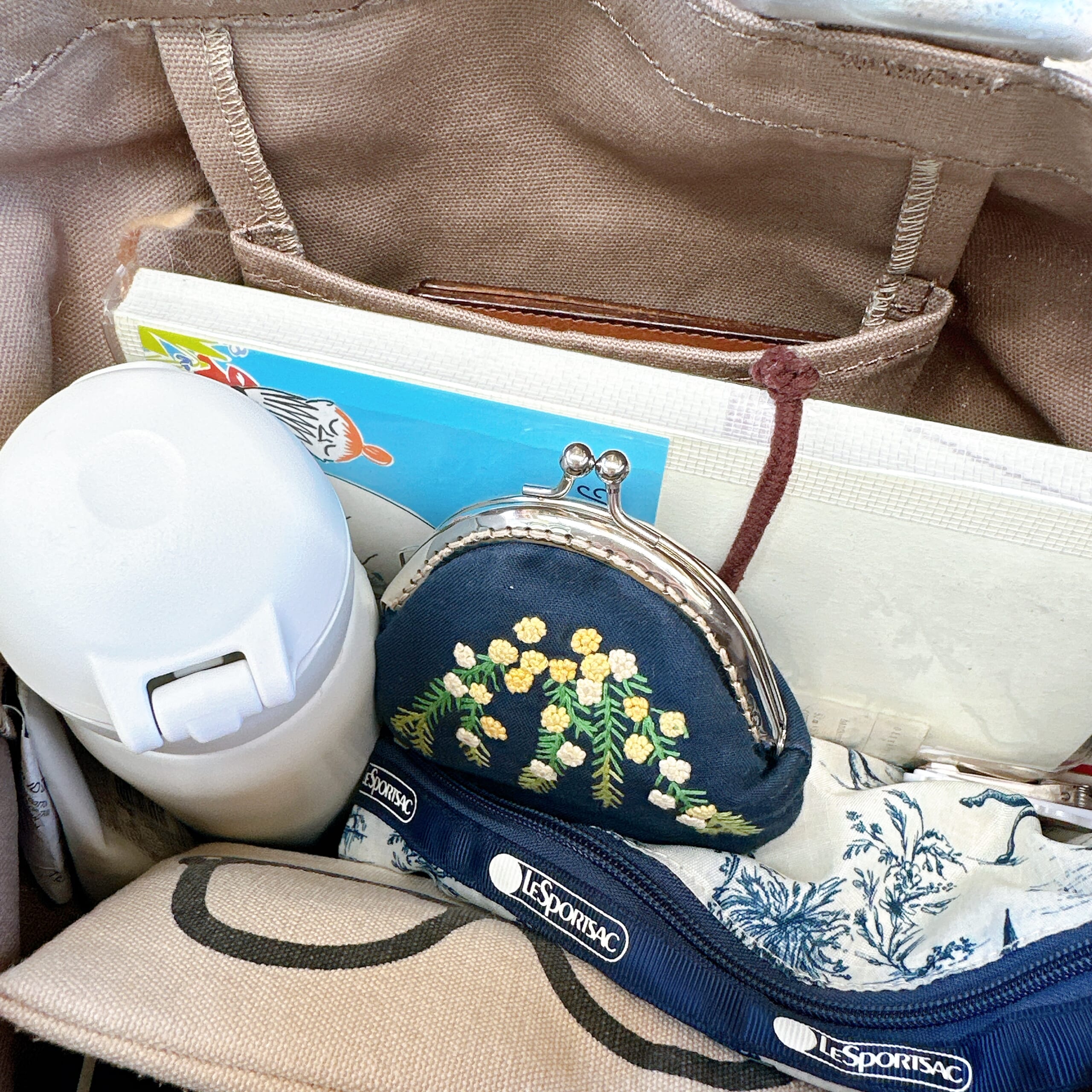 ハンカチ、財布、メガネケース、水筒、ポーチ大・小、手帳、エコバッグ…と、これだけ入れても余裕あり!