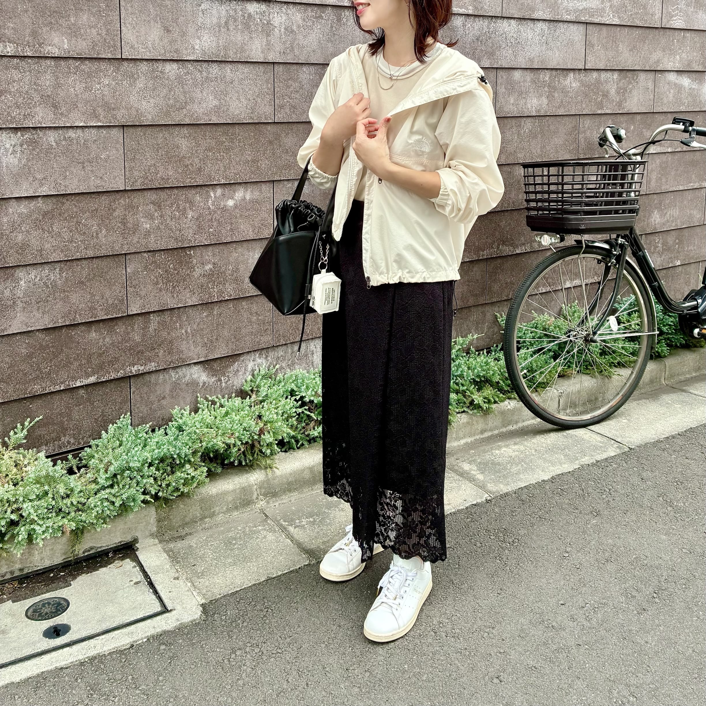 ボトムスはレースのスカートにして、ほんのり華やかさを。