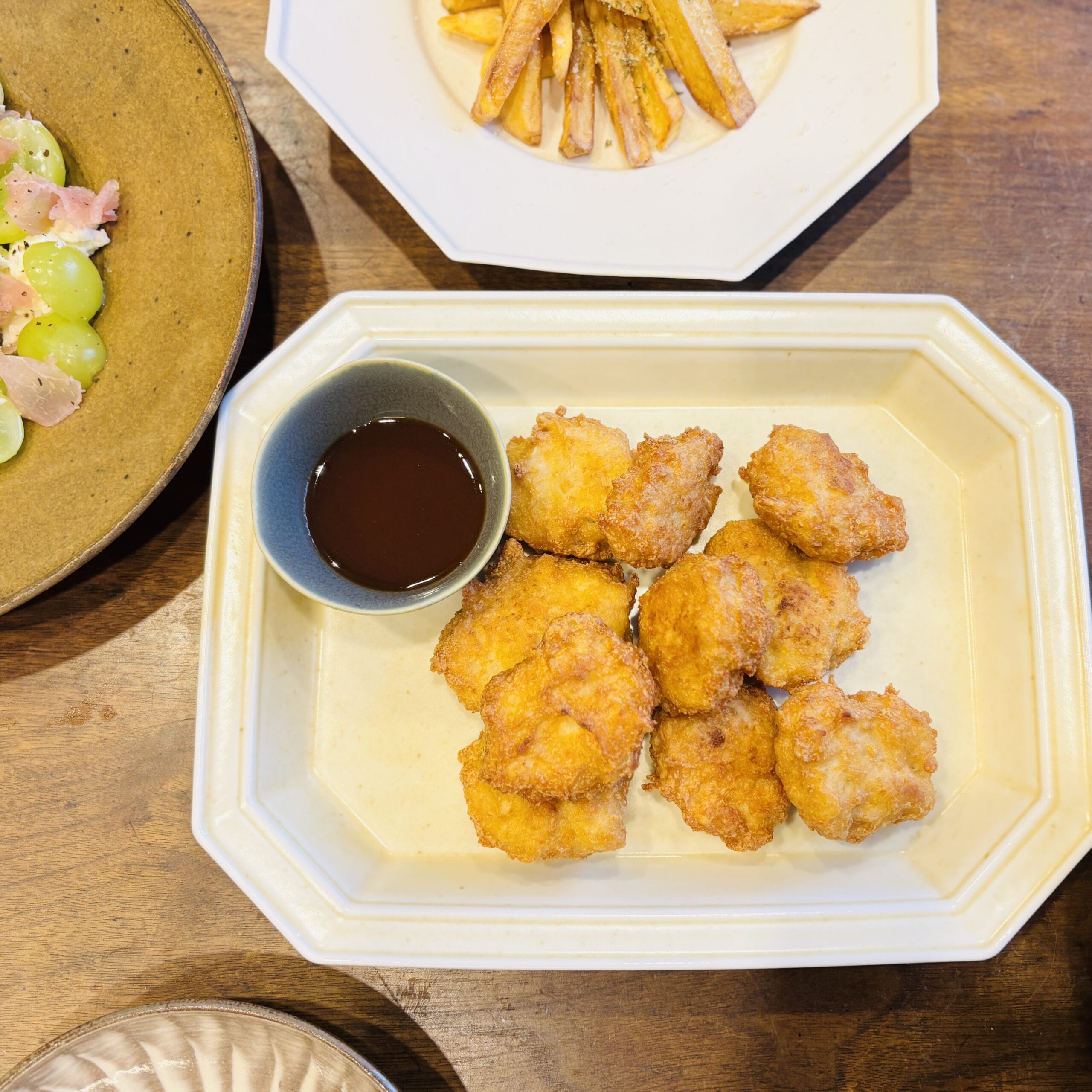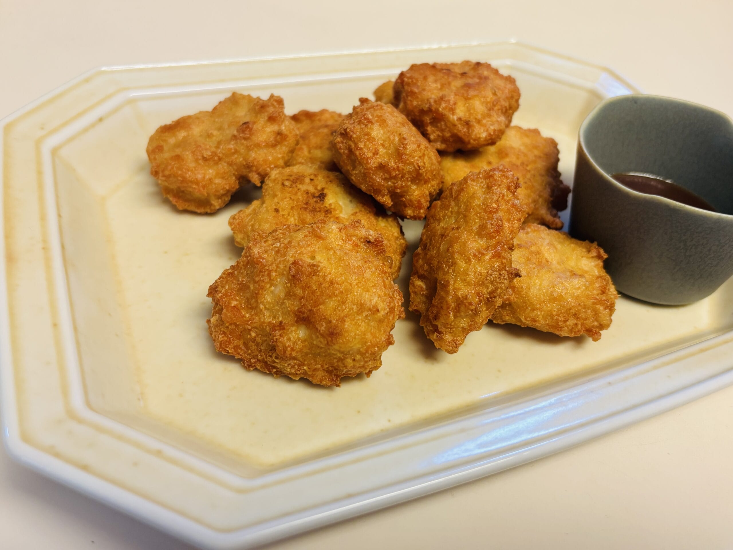 私は形成を雑にしすぎて、ごつごつしたナゲットになっちゃいましたが、それはそれでごつごつした部分がカリッと揚がってよかった…ということに。笑