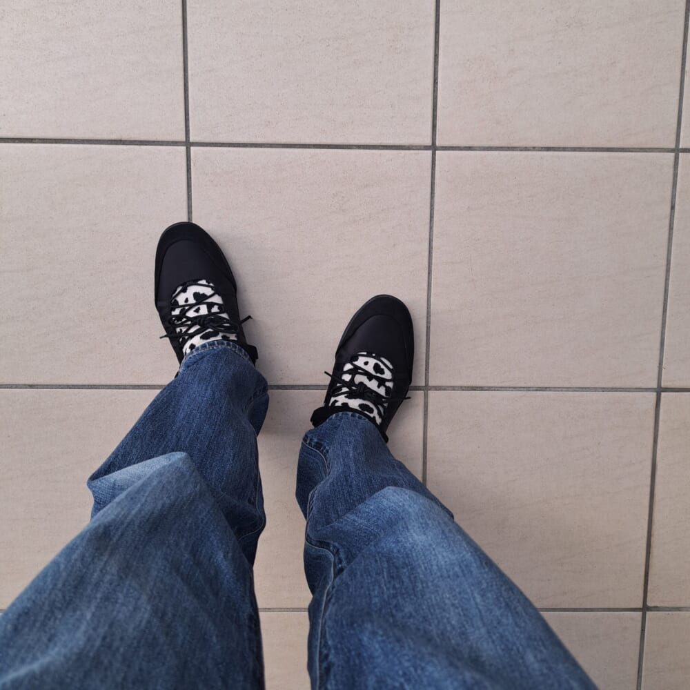 「あ!靴下ずっと見えるやん!」って!