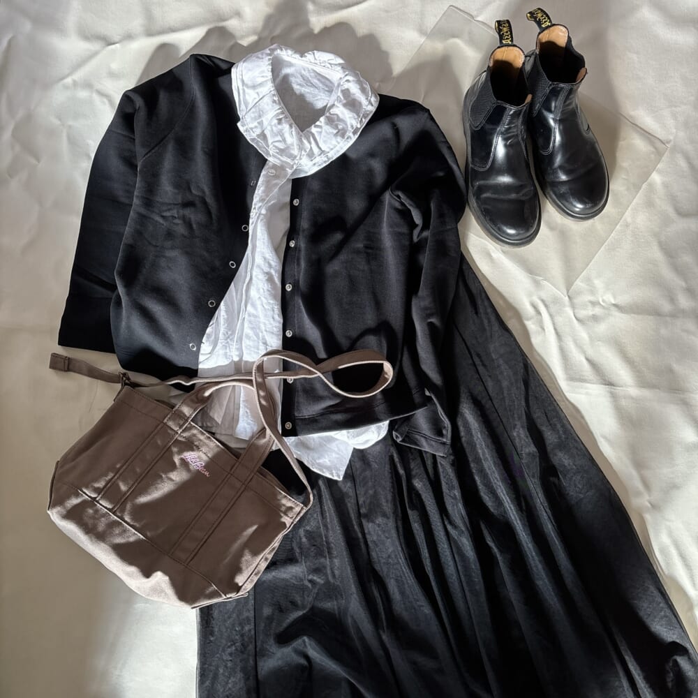 黒のチュールスカートを合わせてモノトーンでベーシックに。