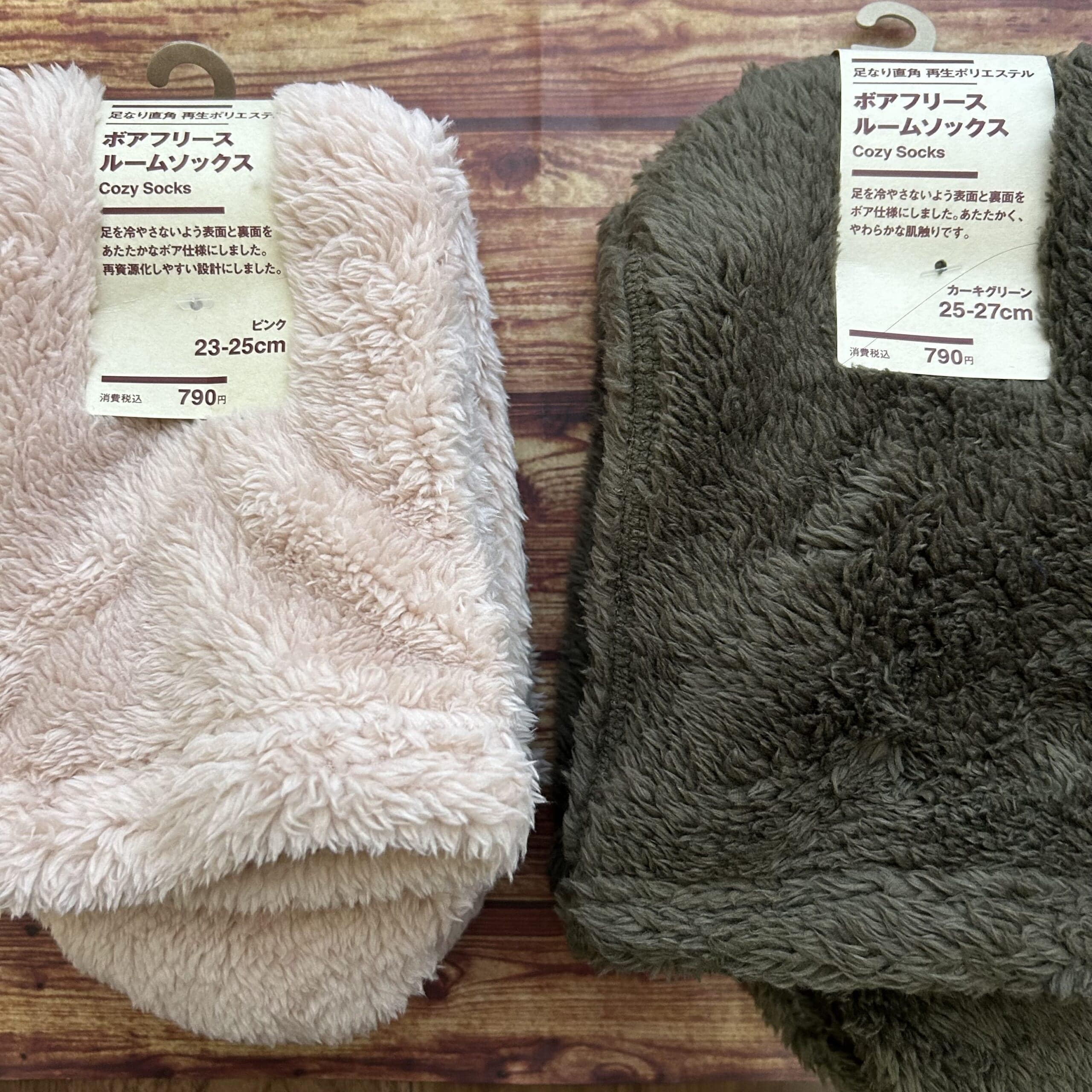 ⚫︎ボアフリース ルームソックス(ピンク/カーキグリーン)