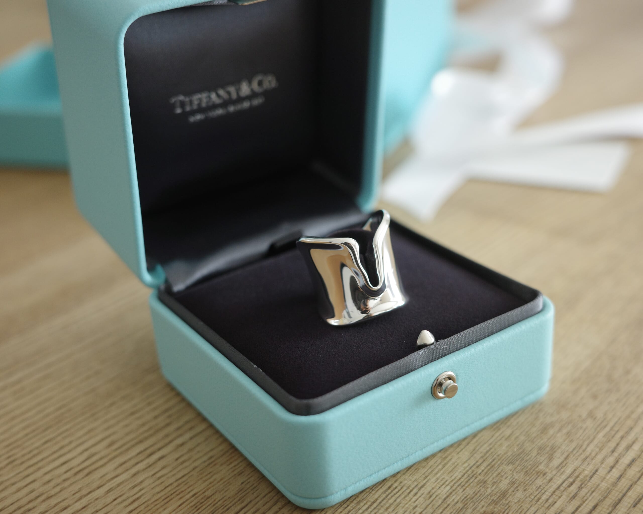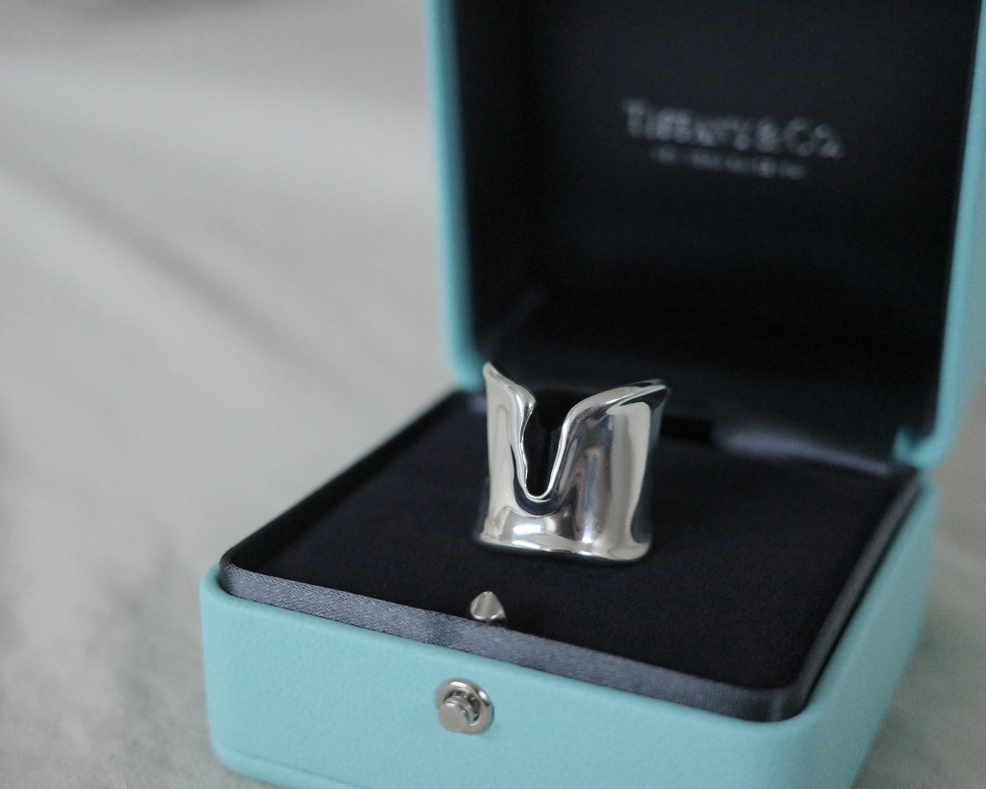 選んだのは、デザイナーのエルサ・ペレッティ氏が手がけた代表作「ボーン カフ」のデザインから着想を得た「スプリット リング」。自分史のなかでは、ティファニーでリングを購入するのはこれが初めてです。