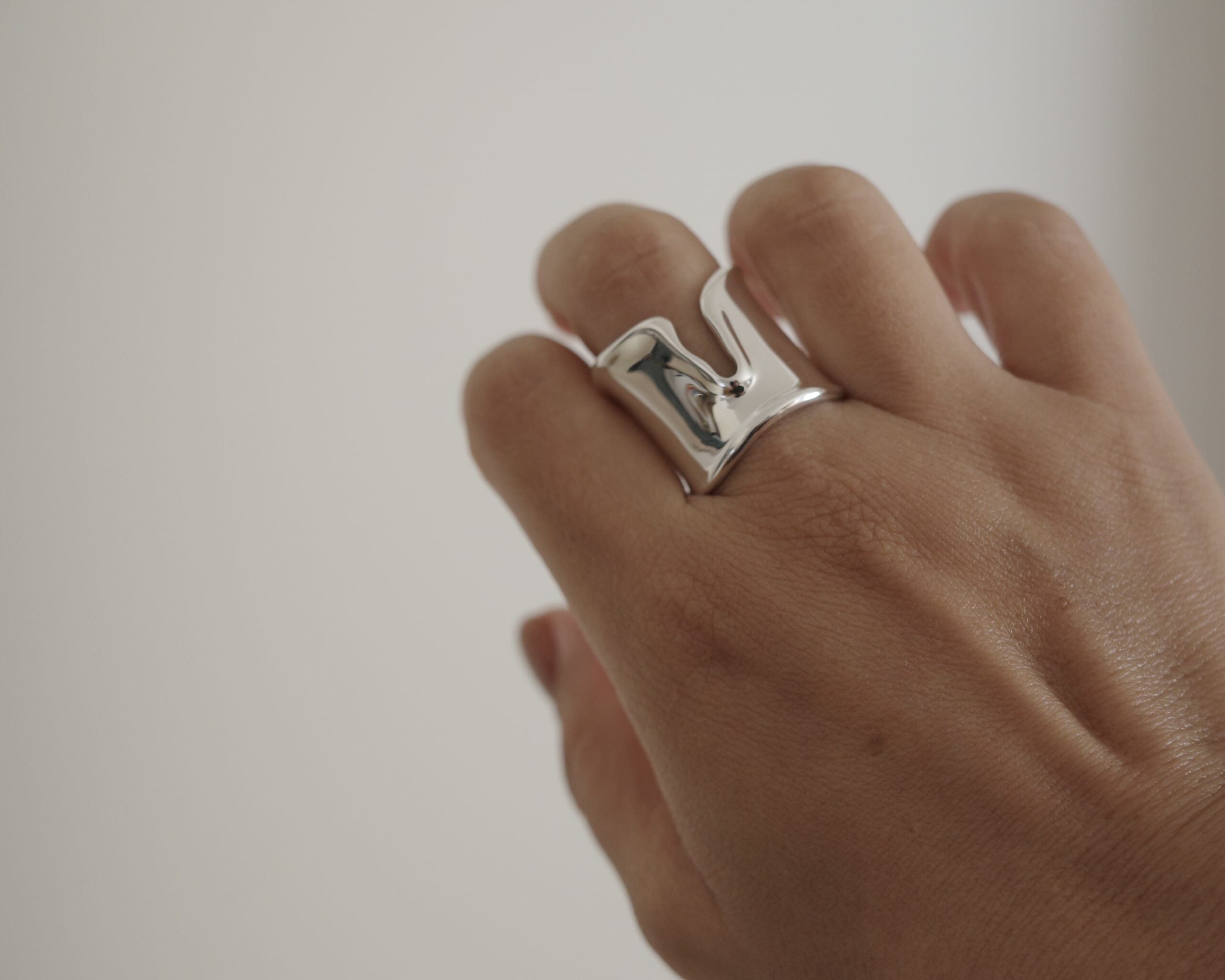 リングの中央にスプリット(切れ込み)が大胆に入ったデザイン。