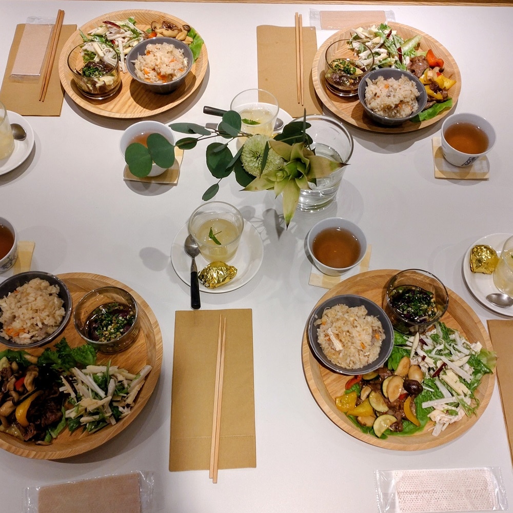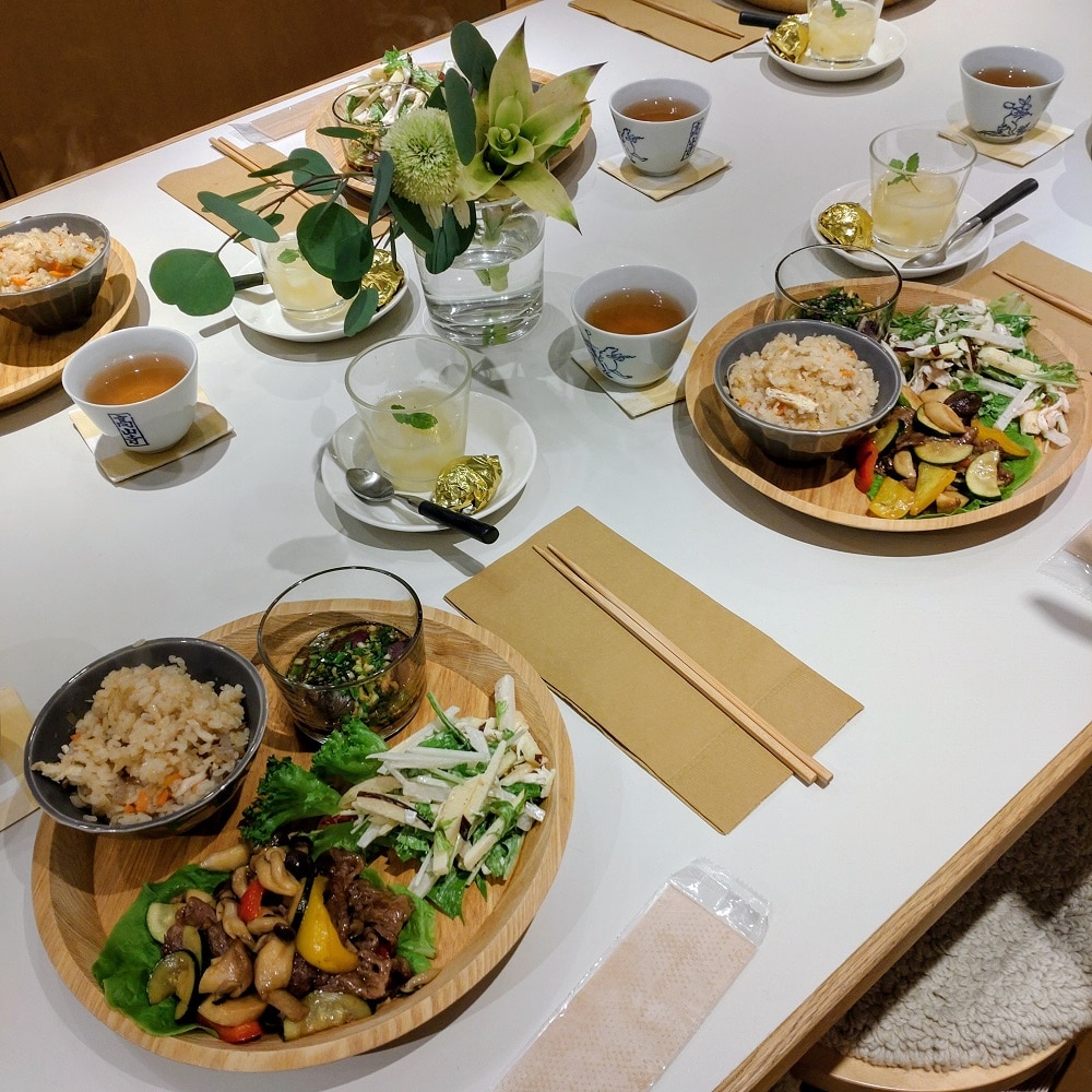 参加された皆さんとはお料理の話はもちろん、布屋さんで開催されるワークショップならではの手づくりのお話も。自作のお洋服や小物で参加される方もいらっしゃって、ハンドメイド話に花が咲きます。