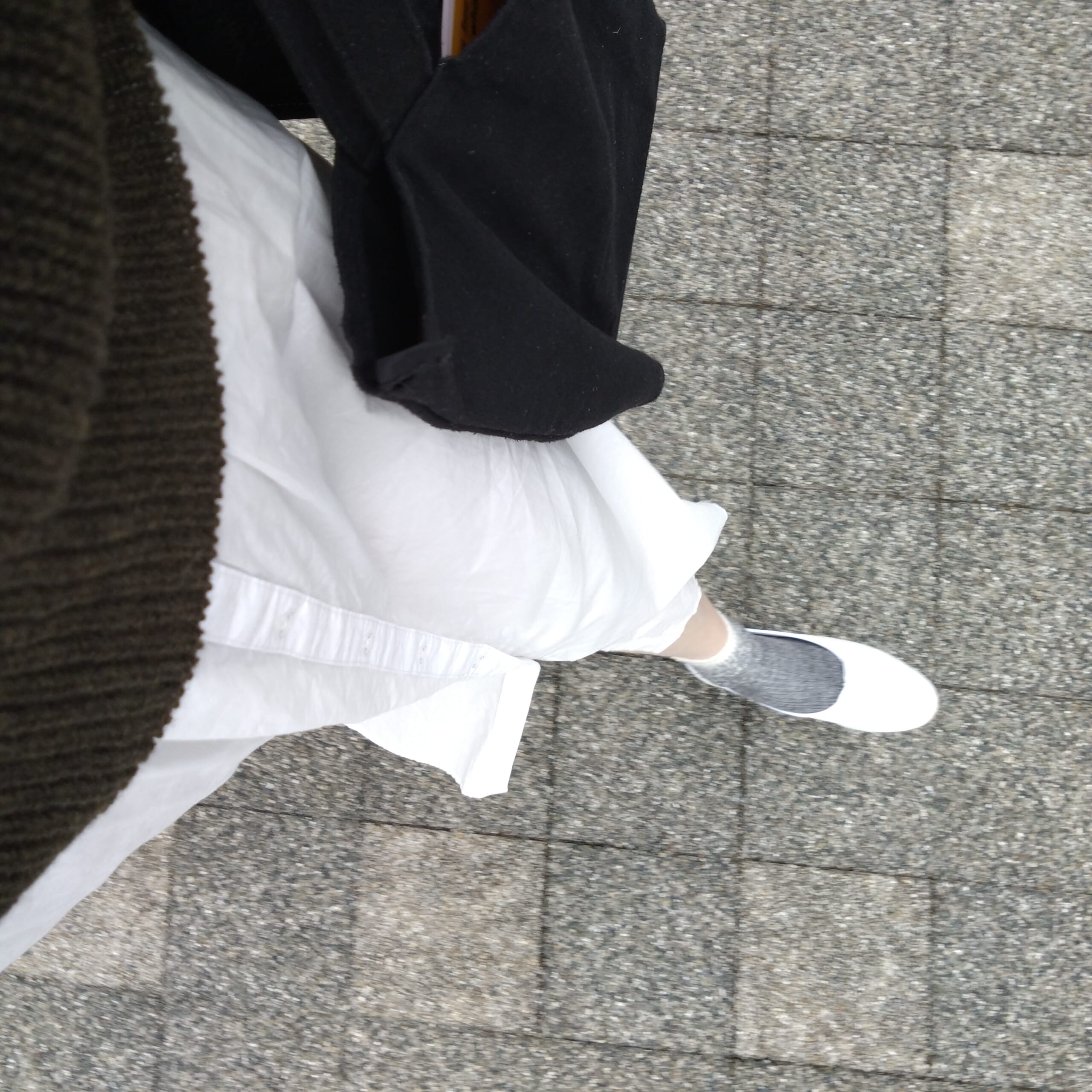 見ようによっては寒々しく感じてしまう白い服も、これを足すだけでほんのり秋仕様になると思ってる。