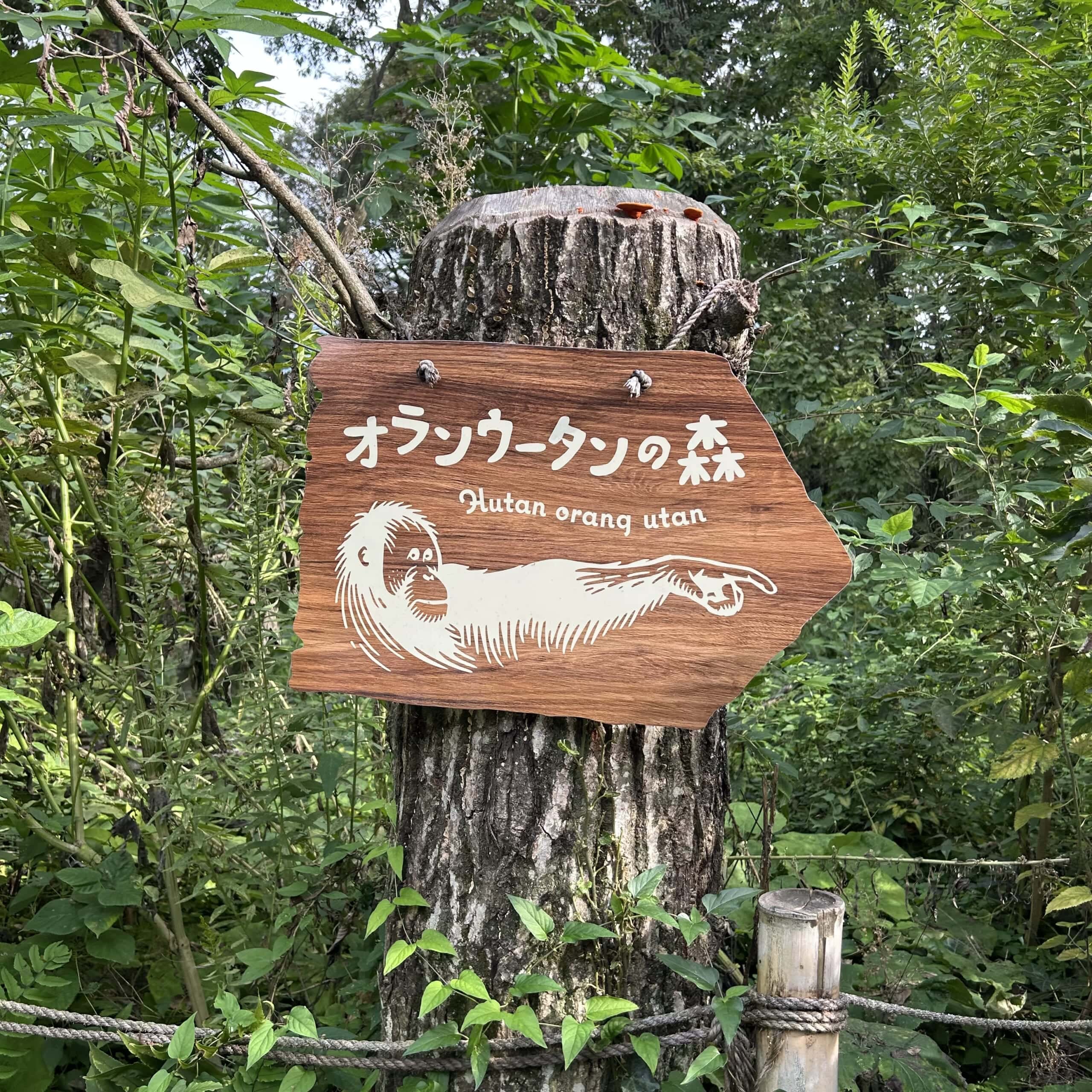 オランウータンの森も注目していました。狭い獣舎とは違い、生き生きと動き回っている姿が見られるように考えられた環境づくりがされているとのこと。オランウータンが大好きな木登りができるように既存の樹林を残しているそうですが、私たちが見たときはおやつ(木の実?)を食べているもぐもぐタイムでした♡
