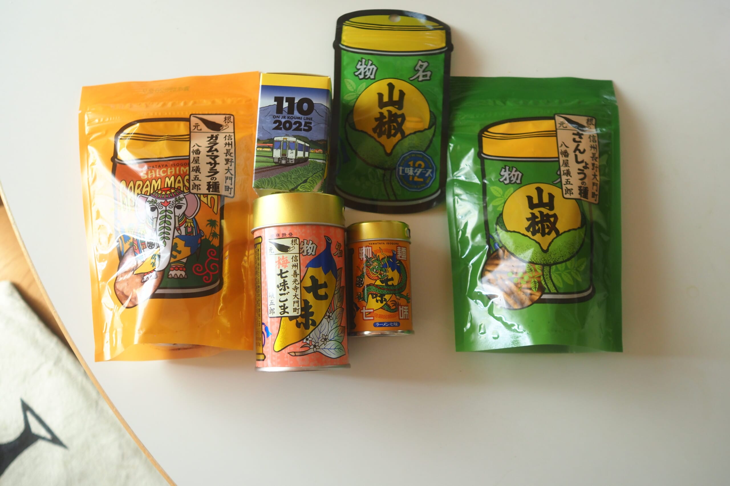 善光寺といえば!の七味唐辛子店。お店の外まで行列ができていたので「なんだろう?」と思っていたら、こちらの本店では自分の好みに合わせた調合をしてくれる「カスタムブレンド」というサービスがありり、そのための行列でした。興味をひかれつつ、商品の豊富さにも目を奪われ、たくさんお買い物してきました。