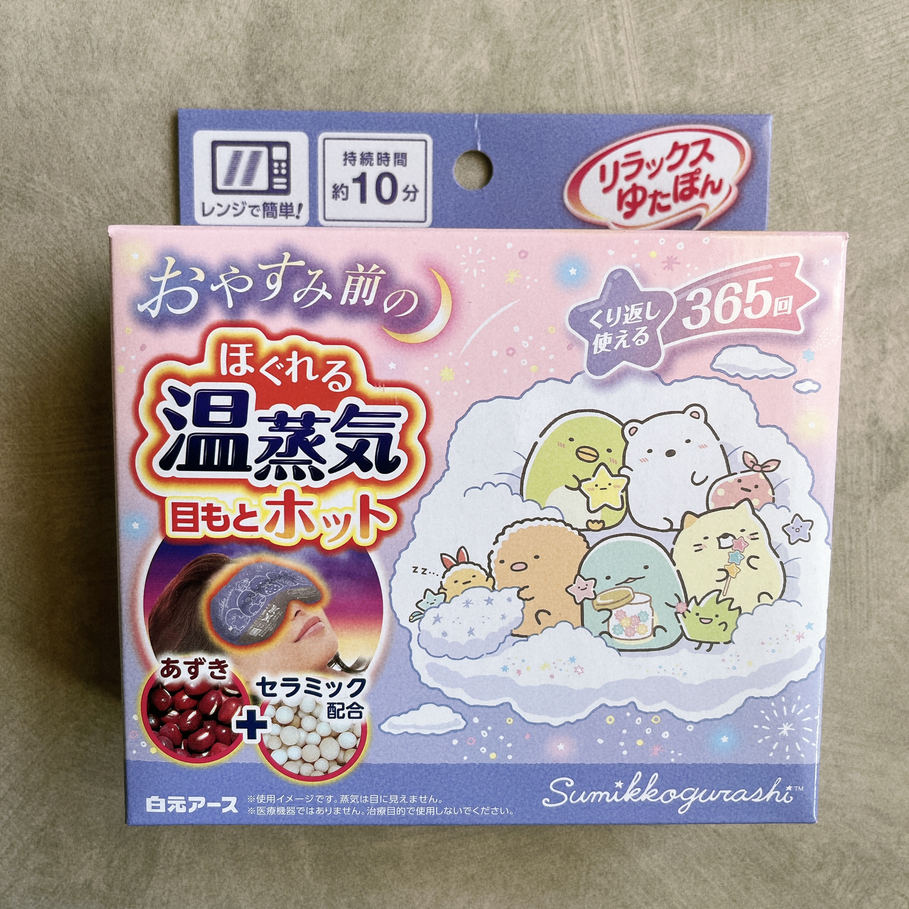 100人隊クリップでも紹介されていた「あずきのチカラ」にしようと思っていましたが、東急ハンズの棚で見つけた、すみっコぐらしデザインのリラックスゆたぽんがあまりにかわいくて、思わずこちらを購入。