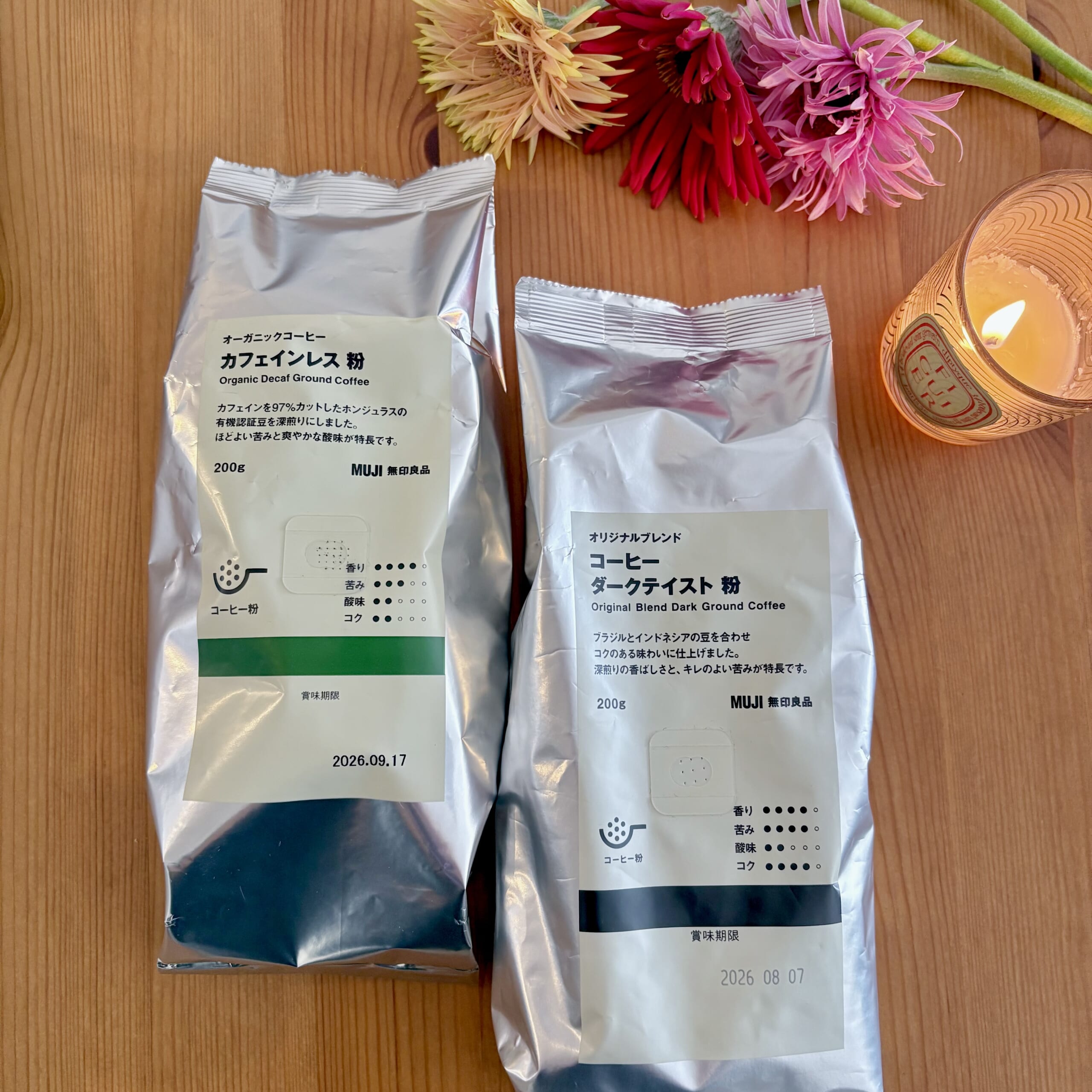 普段深煎りの苦いコーヒーが好きな私は、カフェインレスコーヒーは薄いと感じることが多いのですが、私的に無印良品のカフェインレスはちゃんと苦さもあってほどよい濃さ。