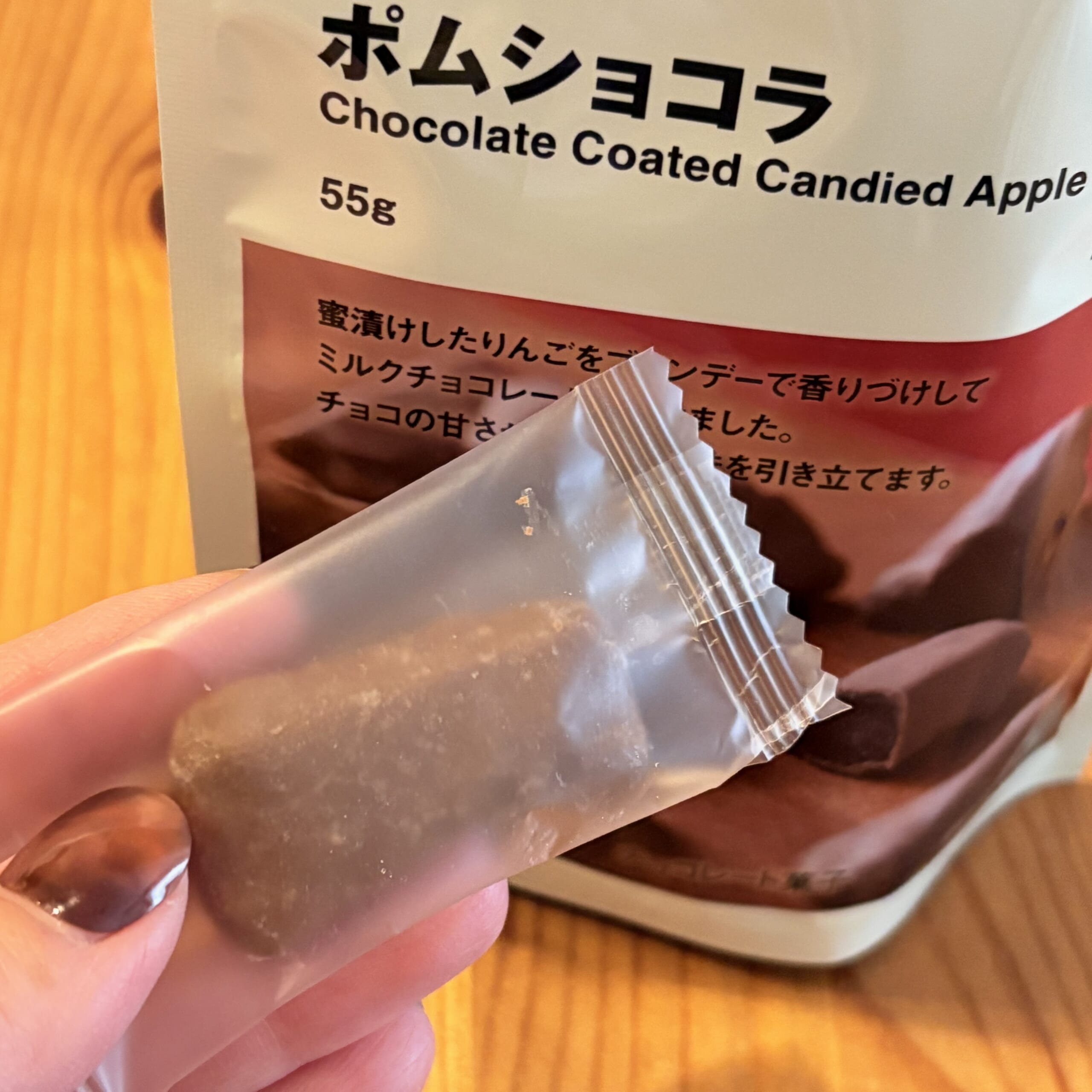 見た瞬間迷わずカゴに入れたのがこちら。蜜漬けリンゴをブランデーで香りづけしてミルクチョコでコーティング!ということで、チョコレートショップに売っていそうなご褒美チョコです。