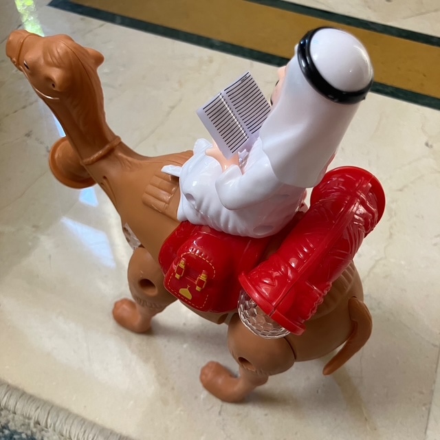 らくだに乗っている男性はコーラン(イスラム教の聖典)を持っています。芸が細かい!