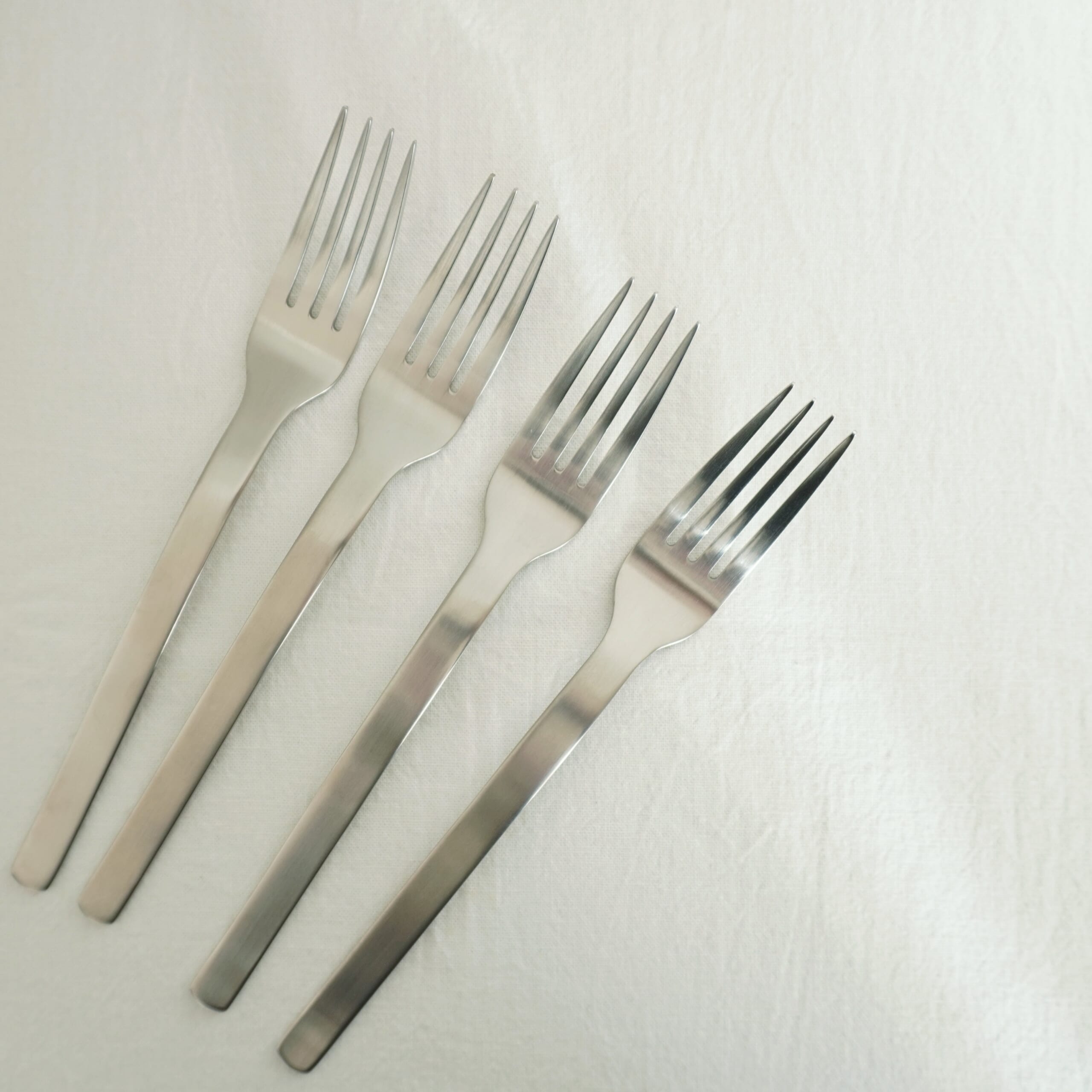 マットな質感、シンプルなデザインと使いやすさがお気に入り。さびに強いステンレスを使っているそうです。スプーンとフォーク同じデザインが揃って嬉しいな〜