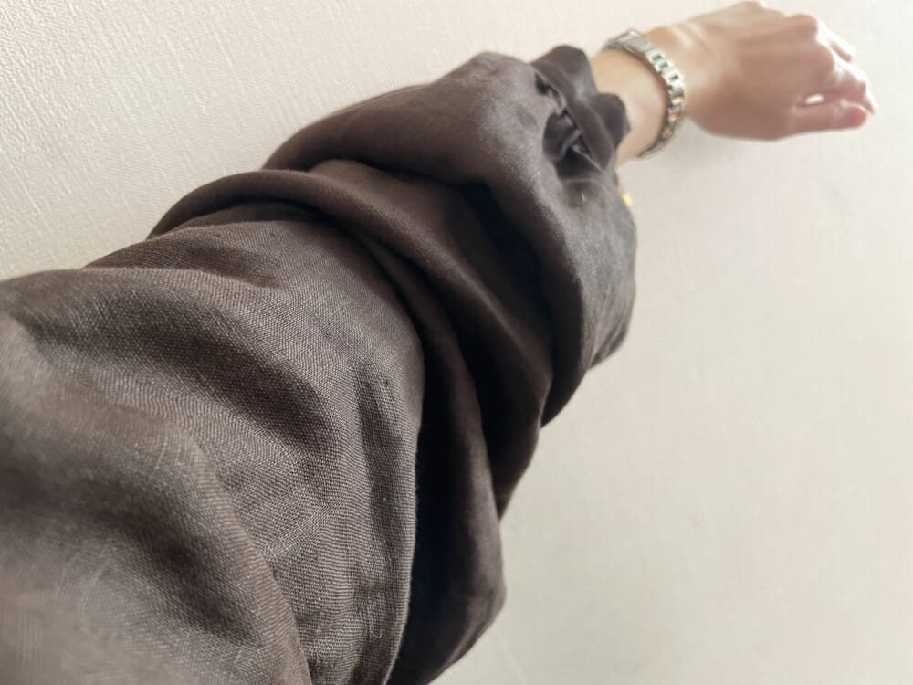 袖の作りにたっぷりと幅があるので、そのままで着てもふんわりした袖になりますし、