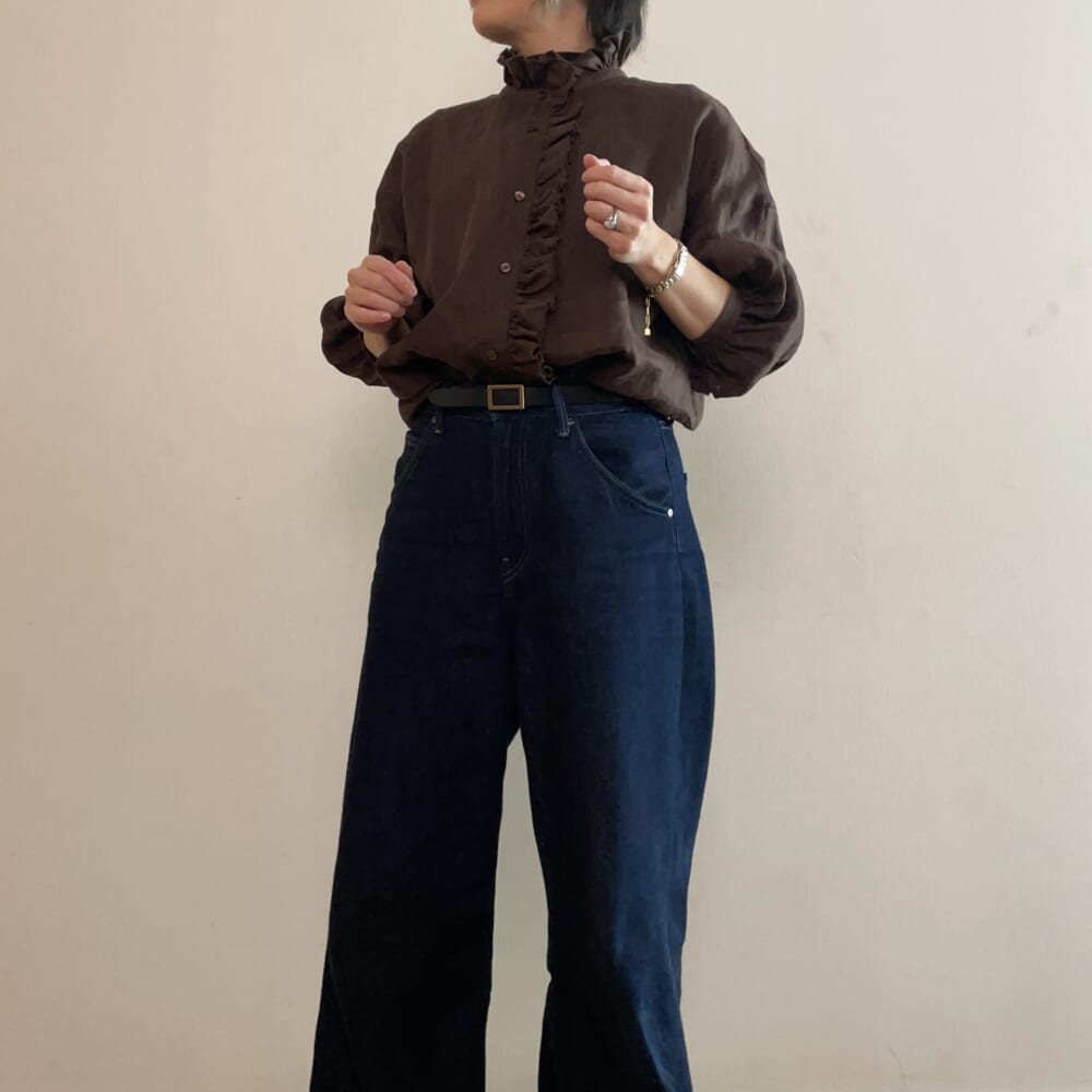 フリルも絶妙なサイズ感で主張がちょうど良く、また、リネンのパリッとした生地感により、フリルが甘すぎないんです。