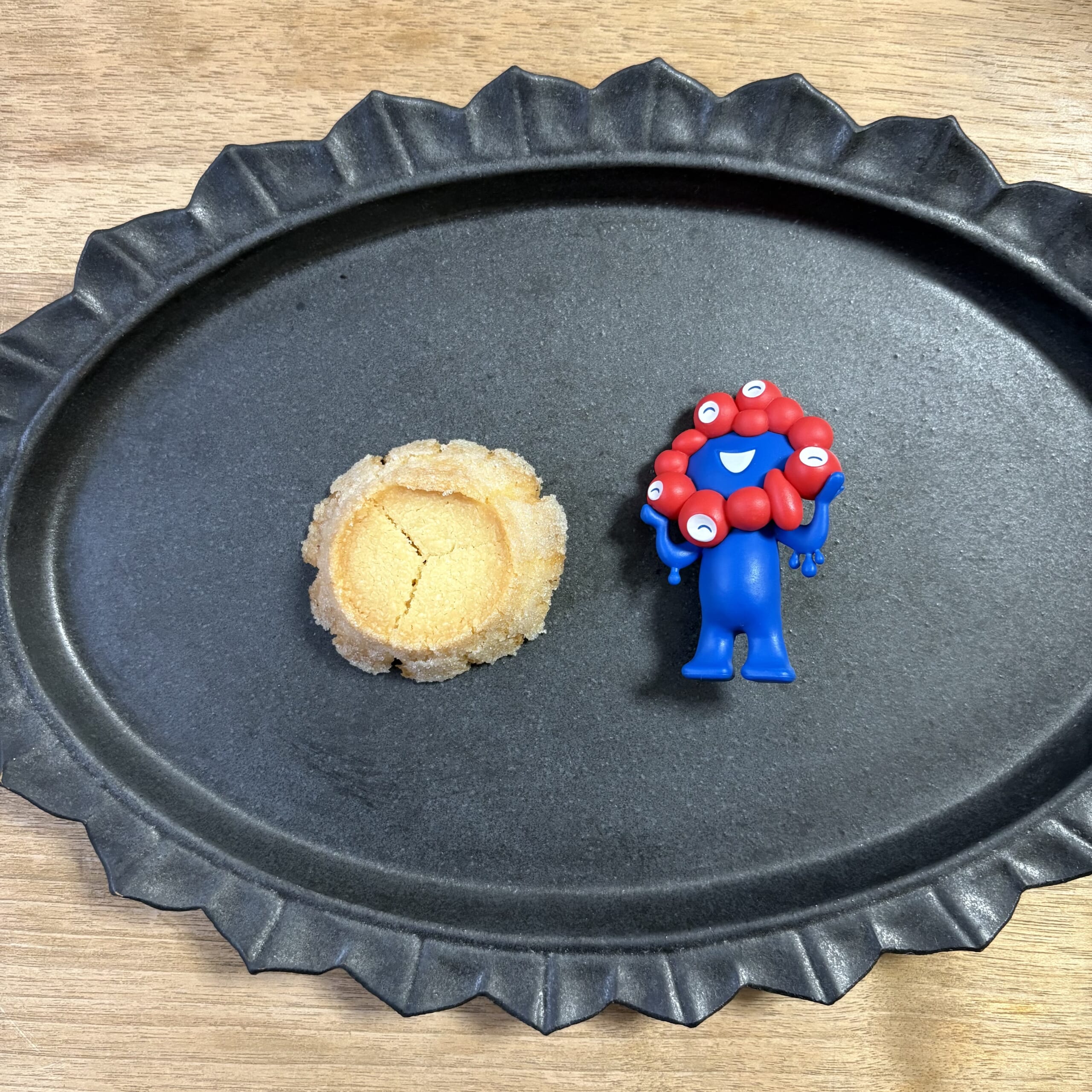 手の平ぐらいの大きさでかなり大き目。一口では食べることができないのでかじってしまいそうですが、かじるとぽろぽろクッキーがこぼれちゃう。
