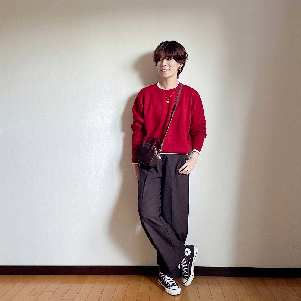 赤を着てるだけで、ポジティブ気分になっちゃいます。