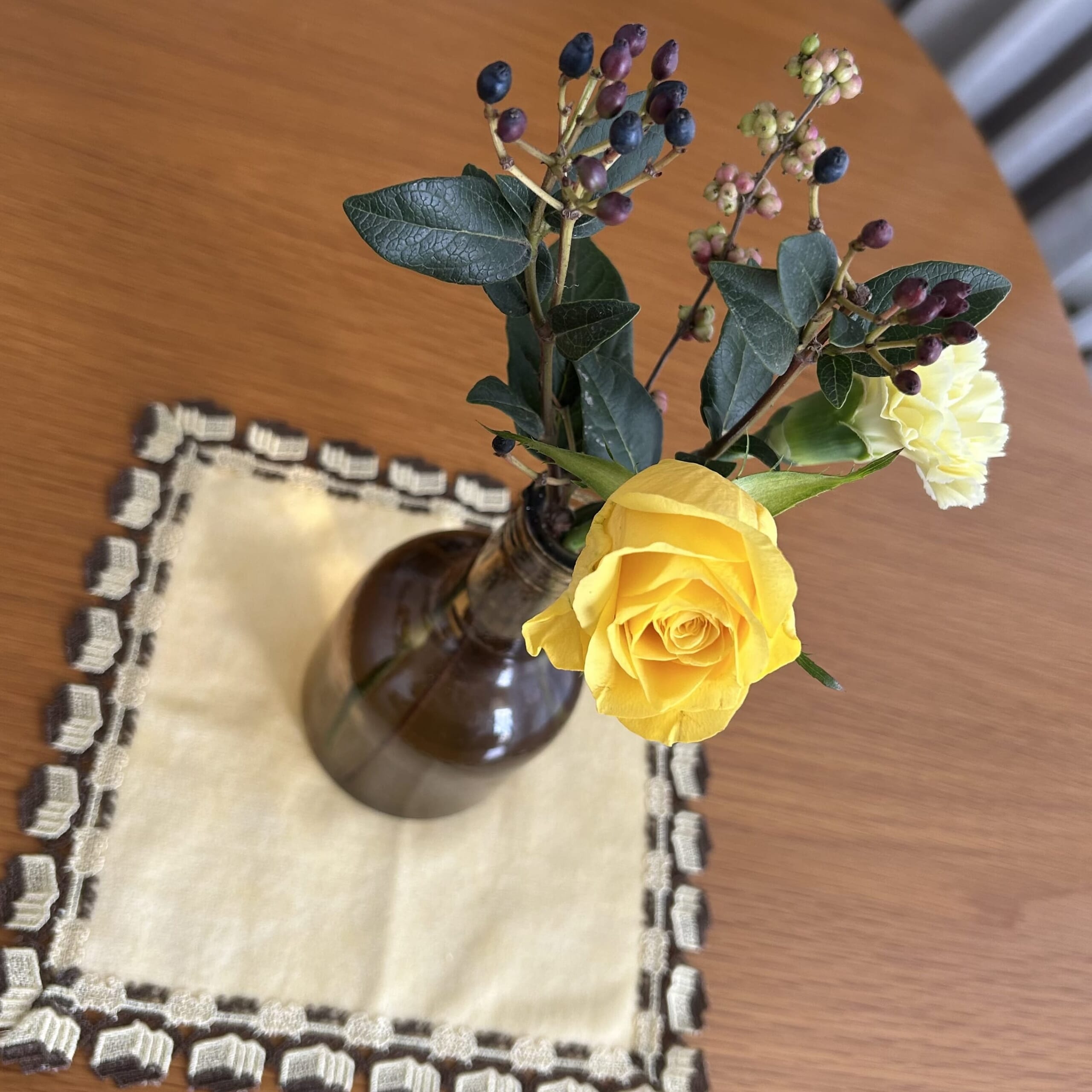 たまたま、部屋に飾っていた花がカステラカラーでしたので、一緒に写真を撮ってみたり…笑