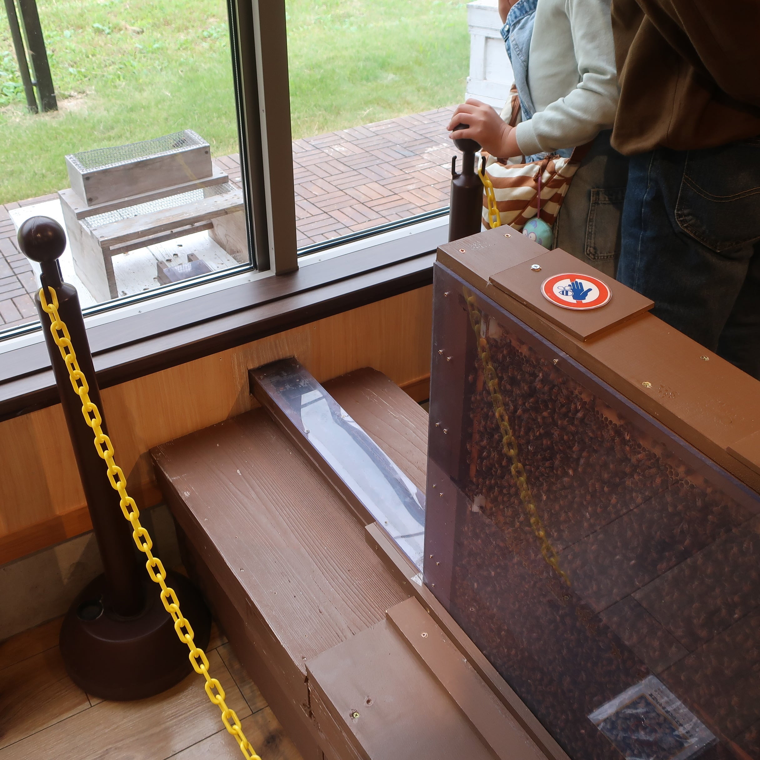 ちょっと文章で説明するのが難しいんですが😅巣までの通路や巣はガラスで覆われていてもちろんハチは出てきません。