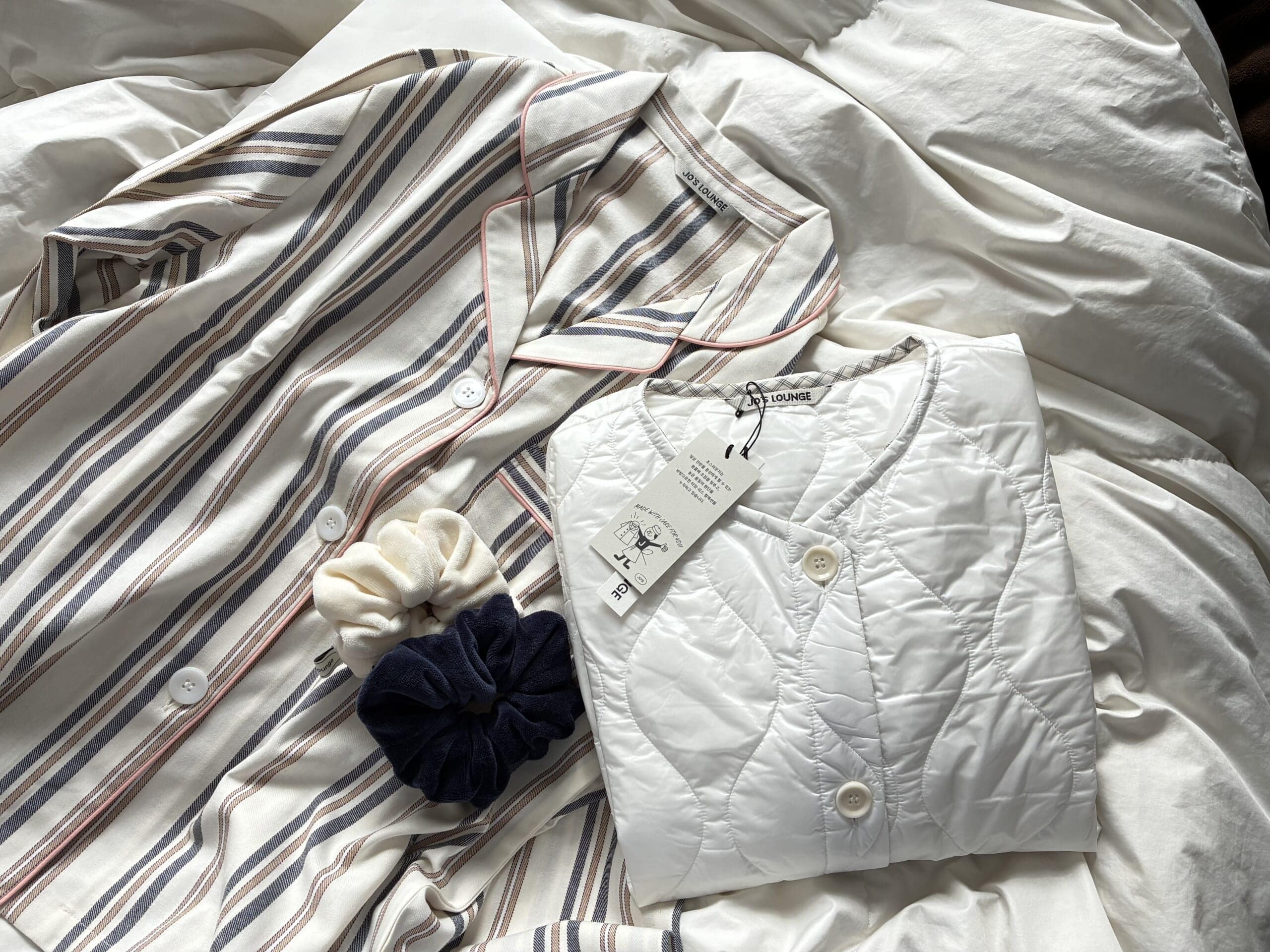 パジャマのほか、キルティングの可愛いハウスコートやパイル生地のシュシュを購入しました。
