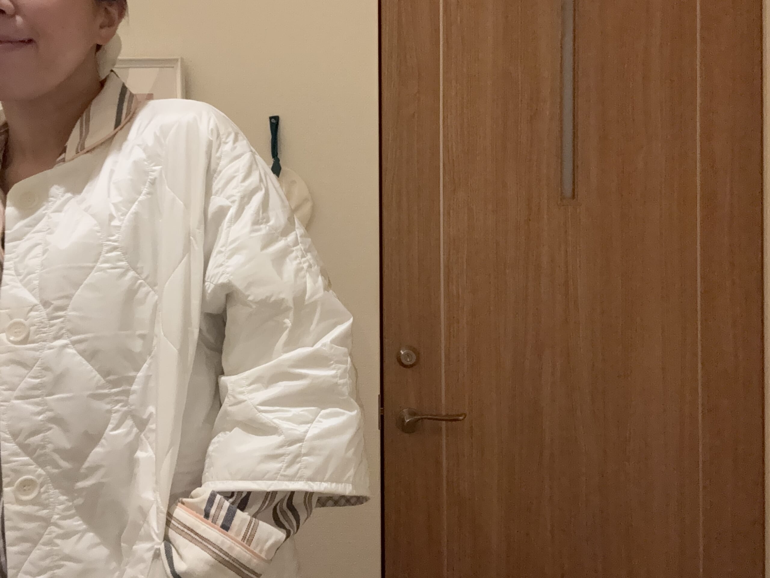 ハウスコートは軽くて暖かくて朝夕冷え込む毎日に大活躍中!袖が七分なのもポケットついてるのも◎