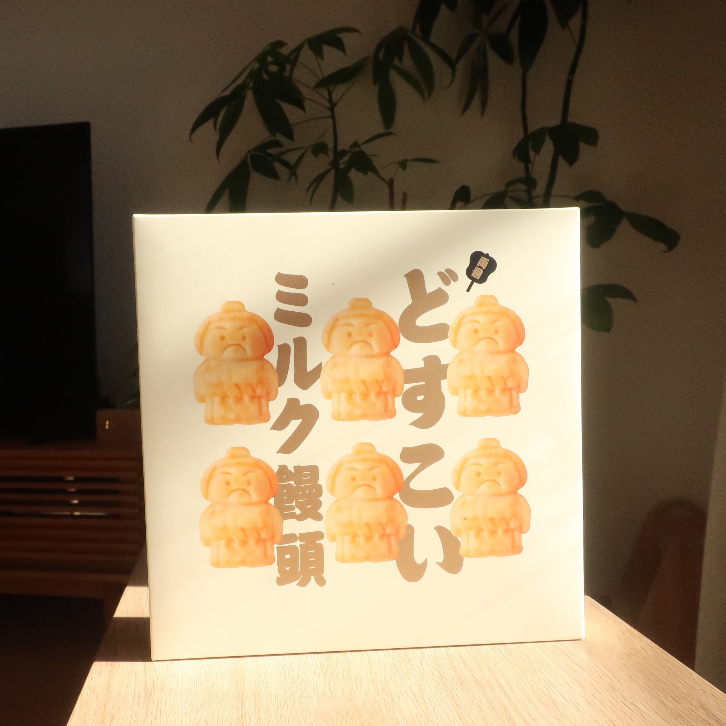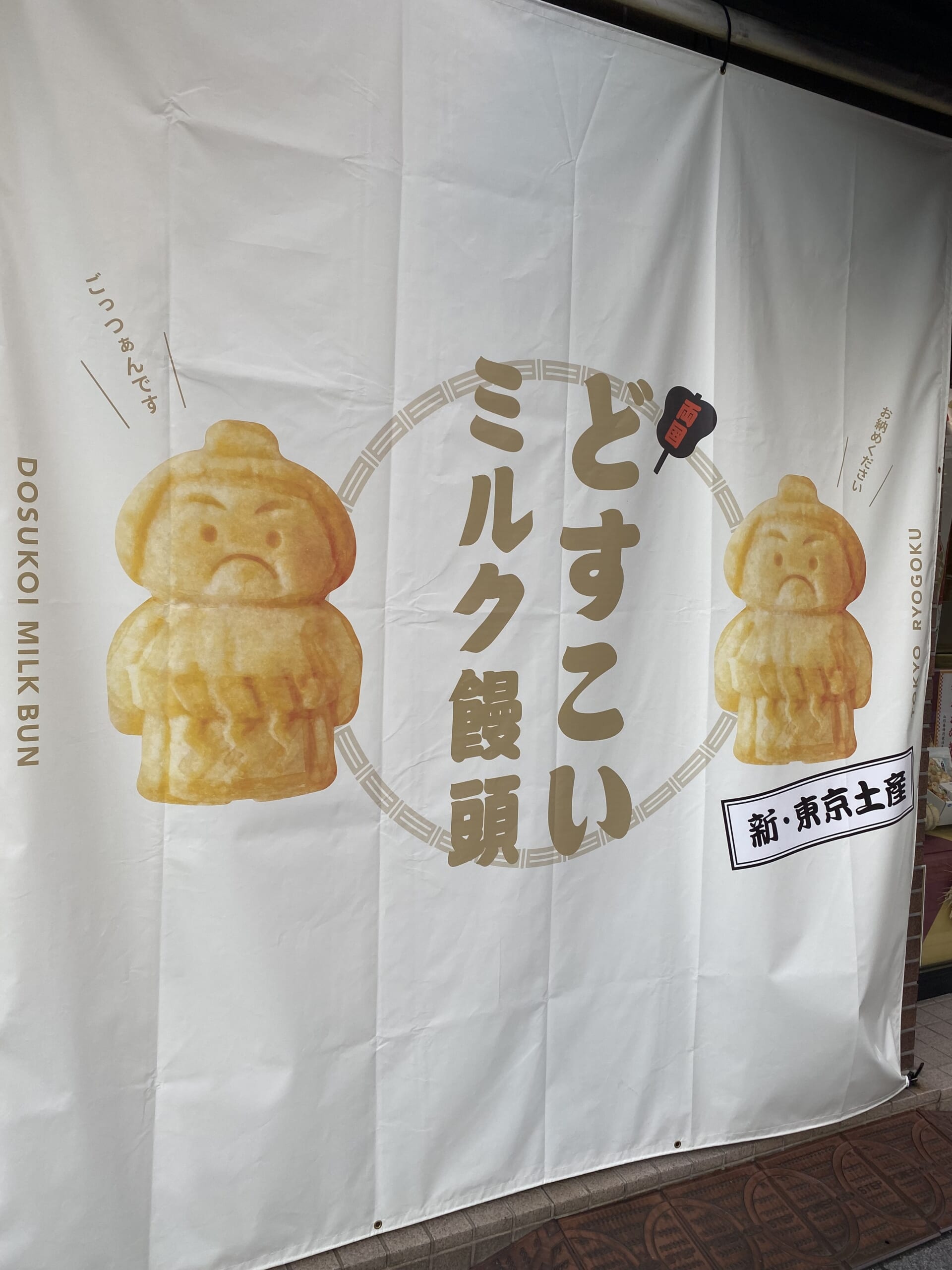 かわいらしい力士のイラストと「どすこいミルク饅頭」の文字。