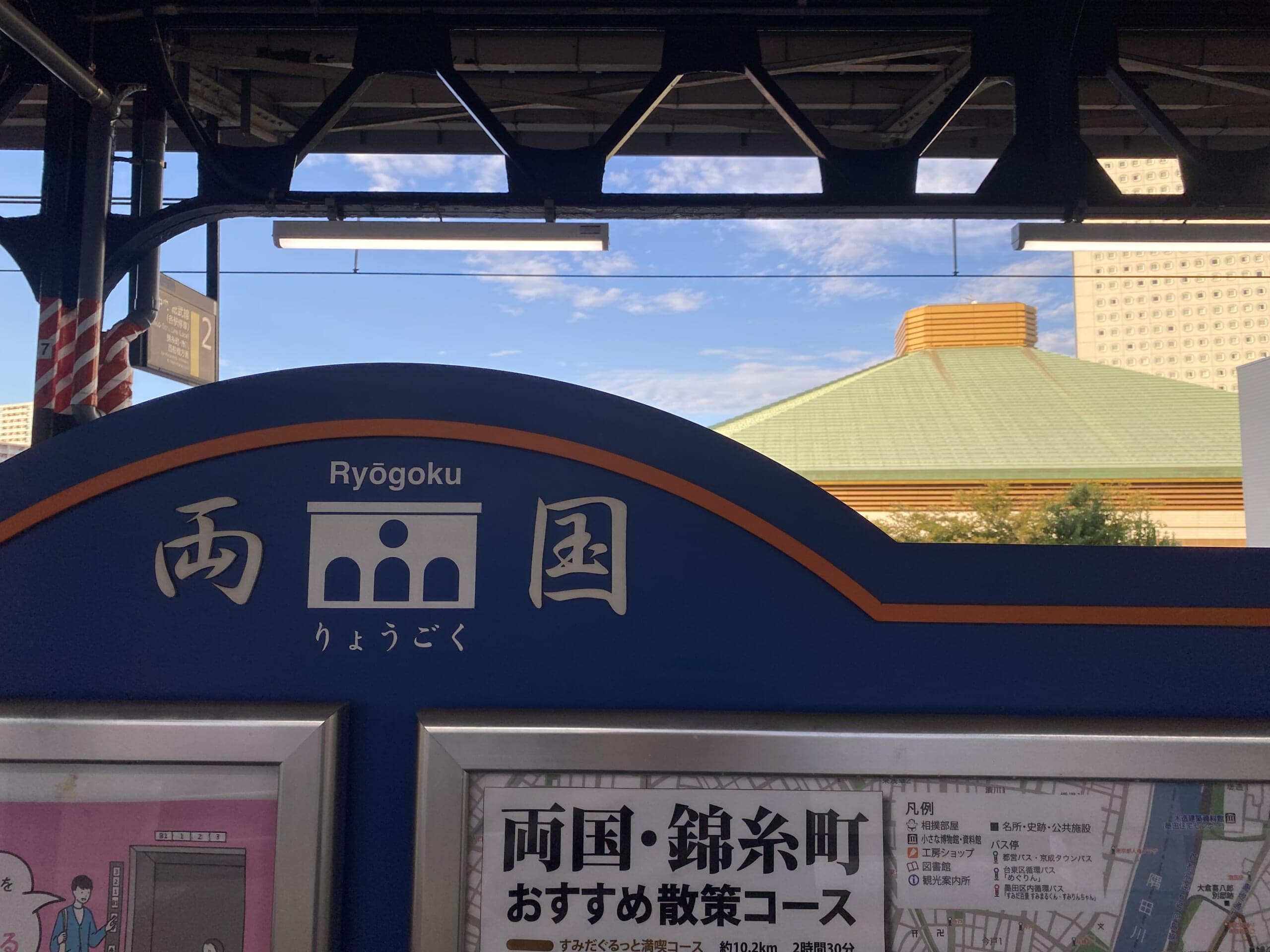 両国駅にも初めて降り立ちましたが、ホームから国技館が見えるんですね~!