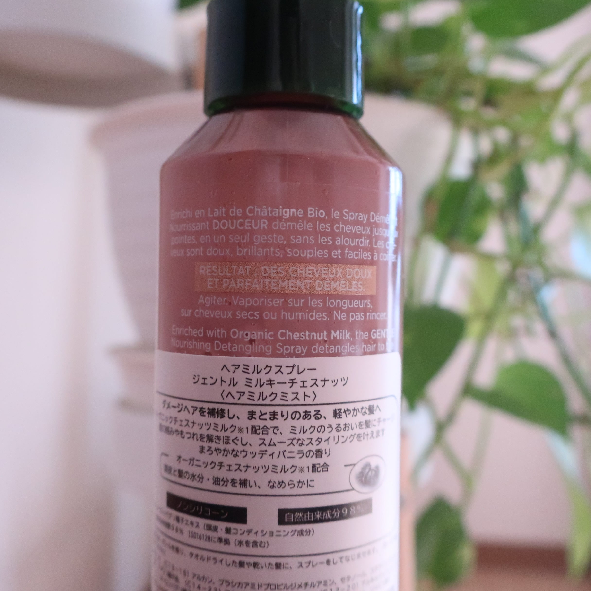 友人におすすめしてもらって試して以来、手放せなくなったのがこの「ヘアミルクスプレー ジェントル ミルキーチェスナッツ」です。