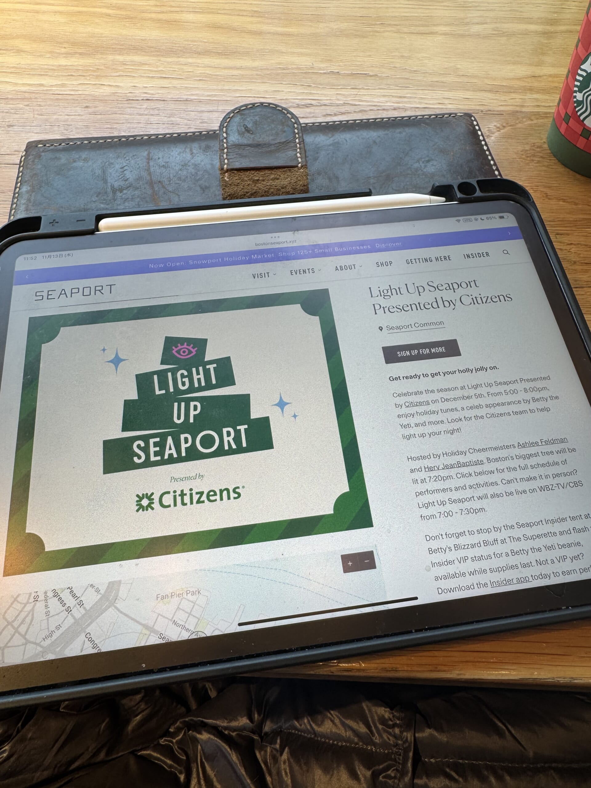あちこちで開催されます。tree lightning eventで検索してみましょう。カナダからツリーが寄贈されてくるボストンコモンが最大だと思いますが人混みも最大です😆 プクが行こうと思っているのが12/5 Seaport tree lighting。 ここも混みますがボストンほどではない。そして今時のお店がいっろいろお店を出しているのでクリスマスギフトの下見もしつつの予定。